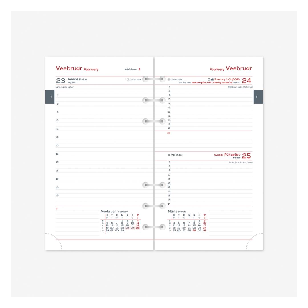 Koko: 95 x 168 mm Kieli: viro ja englanti Rei'itetty irtolehti (6 reikää) Rei'itetyt kulmat Sopii seuraaviin kansiin: MIDI Timex