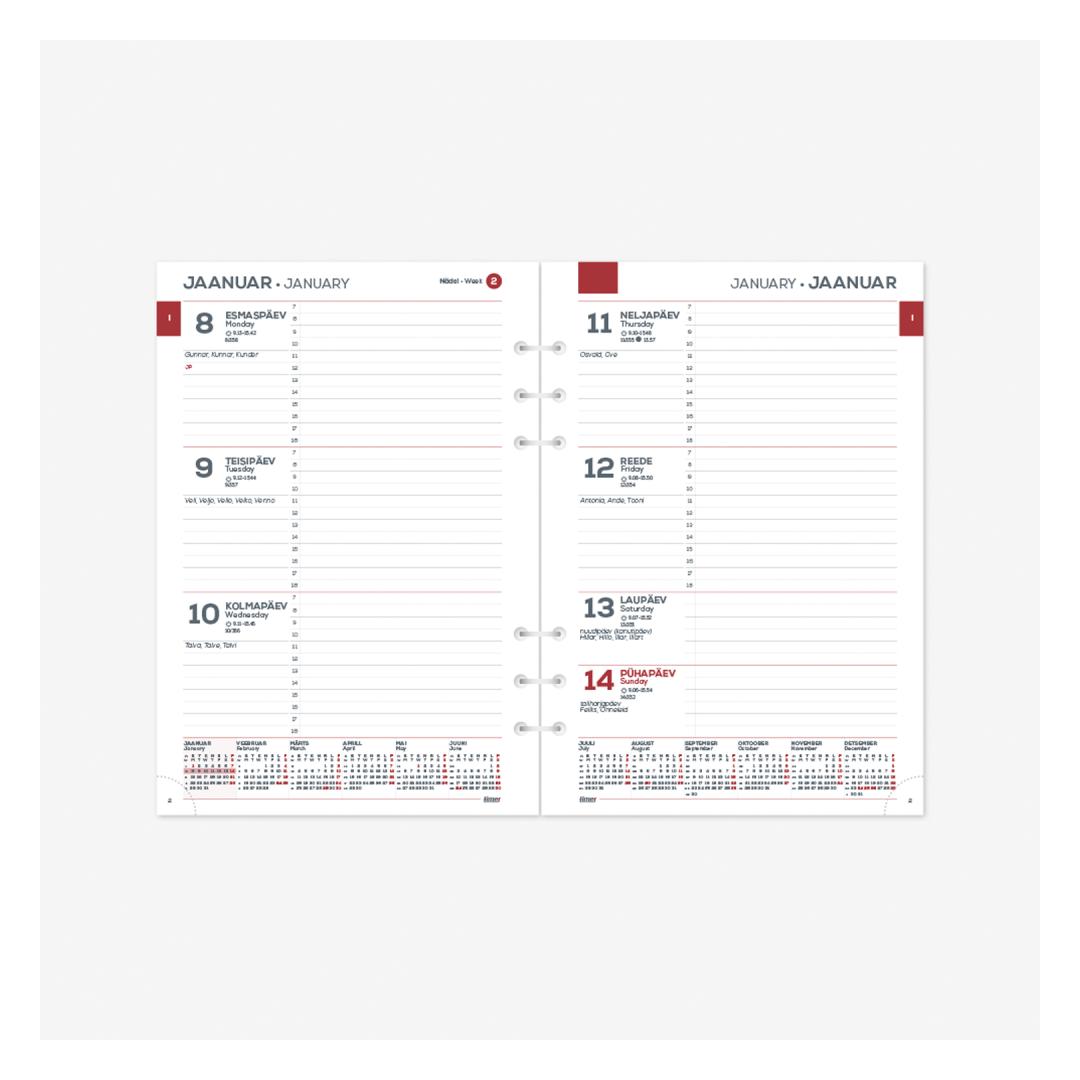 Koko: 145 x 210 mm (A5) Kieli: viro ja englanti Rei'itetyt sivut (6 reikää) Rei'itetyt kulmat Sopii seuraaviin kansiin: MAXI Leather MAXI Leatherette MAXI Exclusive