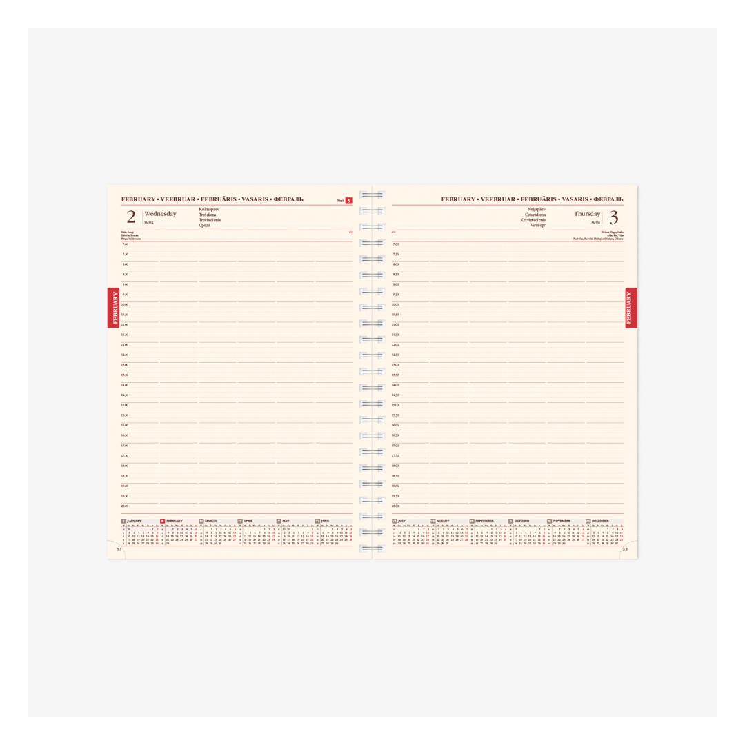 Kansikoko: 240 x 315 mm Sisäkoko: 210 x 297 mm Pehmustetut tekonahkakannet, joissa on ommellut reunat, sisätaskut kansien sisäpuolella Kierresidottu sisälohko Rei'itetyt kulmat Kieli: kaikki SENATORI-kalenterit sisältävät.00-20.00. Lisäsivut: vuosisuunnitelma (6 kuukautta per sivu), taulukkokalenteri, muistilaput, Viron, Latvian ja Liettuan kartta, yhteystiedot.