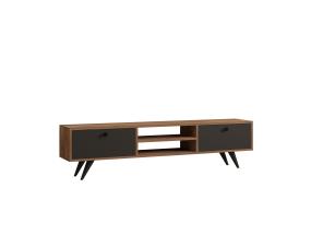 Televisiopöytä on valmistettu melamiinipinnoitetusta huonekalulevystä, jossa on puukuvioinen viimeistely. Pöydän jalat on sidottu kuparinvärisillä metallin yksityiskohdilla, jotka antavat pöydälle tyylikkään ilmeen ja varmistavat samalla pohjarakenteen lujuuden. Laadukkaat tv-telineet jokaiseen huoneeseen.