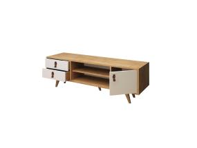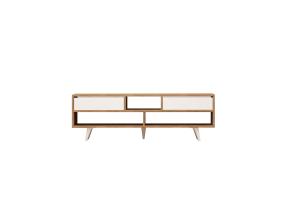 Televisiopöytä on valmistettu melamiinipinnoitetusta huonekalulevystä, jossa on puukuvioinen viimeistely. Pöydän jalat on sidottu kuparinvärisillä metallin yksityiskohdilla, jotka antavat pöydälle tyylikkään ilmeen ja varmistavat samalla pohjarakenteen lujuuden. Laadukkaat tv-telineet jokaiseen huoneeseen.