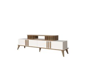 Televisiopöytä on valmistettu melamiinipinnoitetusta huonekalulevystä, jossa on puukuvioinen viimeistely. Pöydän jalat on sidottu kuparinvärisillä metallin yksityiskohdilla, jotka antavat pöydälle tyylikkään ilmeen ja varmistavat samalla pohjarakenteen lujuuden. Laadukkaat tv-telineet jokaiseen huoneeseen.