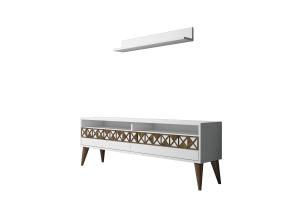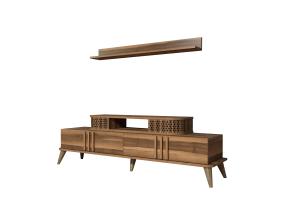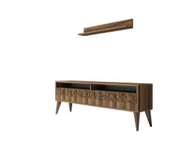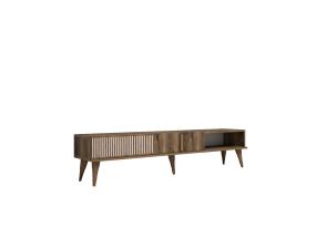 Televisiopöytä on valmistettu melamiinipinnoitetusta huonekalulevystä, jossa on puukuvioinen viimeistely. Pöydän jalat on sidottu kuparinvärisillä metallin yksityiskohdilla, jotka antavat pöydälle tyylikkään ilmeen ja varmistavat samalla pohjarakenteen lujuuden. Laadukkaat tv-telineet jokaiseen huoneeseen.