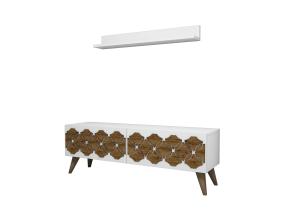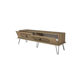 Televisiopöytä on valmistettu melamiinipinnoitetusta huonekalulevystä, jossa on puukuvioinen viimeistely. Pöydän jalat on sidottu kuparinvärisillä metallin yksityiskohdilla, jotka antavat pöydälle tyylikkään ilmeen ja varmistavat samalla pohjarakenteen lujuuden. Laadukkaat tv-telineet jokaiseen huoneeseen.
