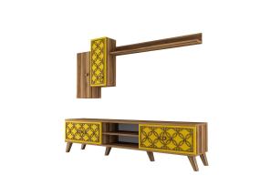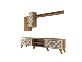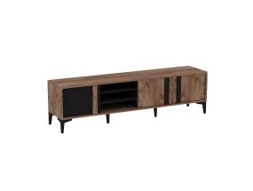 Televisiopöytä on valmistettu melamiinipinnoitetusta huonekalulevystä, jossa on puukuvioinen viimeistely. Pöydän jalat on sidottu kuparinvärisillä metallin yksityiskohdilla, jotka antavat pöydälle tyylikkään ilmeen ja varmistavat samalla pohjarakenteen lujuuden. Laadukkaat tv-telineet jokaiseen huoneeseen.