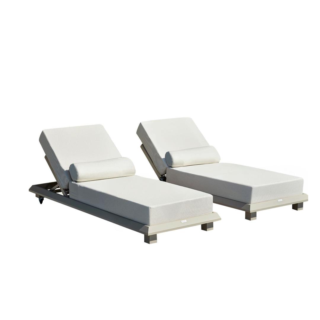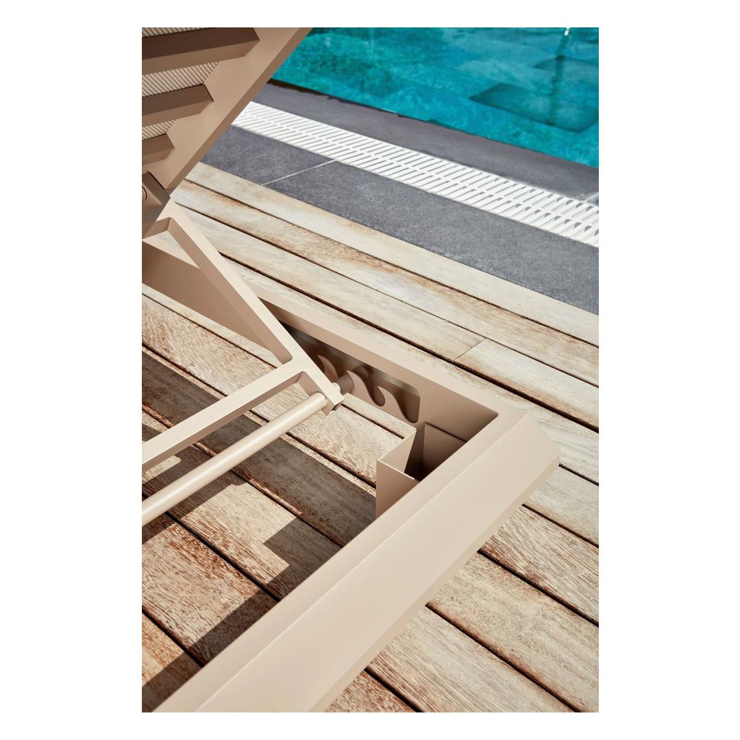 Our sunlounger features a portable mattress and cushion, making it easy to move around your outdoor space. The aluminum legs provide stability and support, while the beige color adds a touch of elegance to any patio or poolside area. Whether you're soaking up the sun or enjoying a good book, this sunlounger is the perfect spot to relax and rejuvenate.