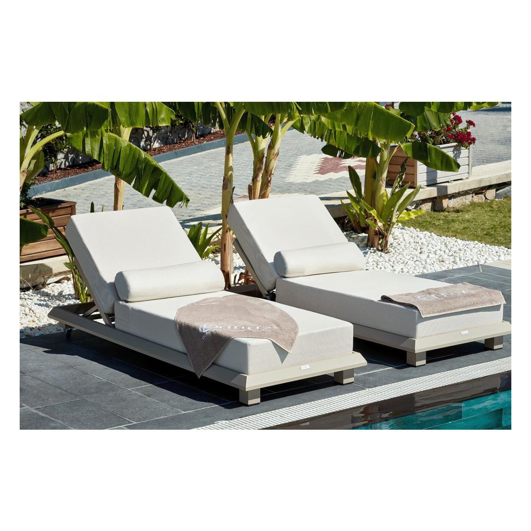 Escape to paradise with our luxurious sunlounger, the perfect addition to your outdoor oasis. Made with 100% OLEFIN fabric, this sunlounger is not only stylish but also durable, ensuring it will last for years to come. The 28 DNS medium hard sponge provides the ultimate comfort, allowing you to relax and unwind in style.