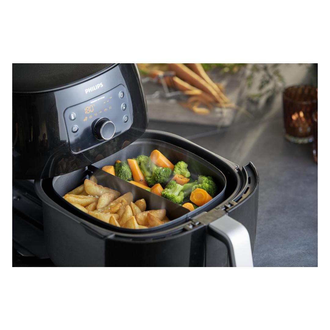 With this special Philips Airfryer party master kit, you can host a fun and healthy party with all of your favourite party dishes. Maximise the Airfryer's cooking spaces with the double layer accessory and food separator.