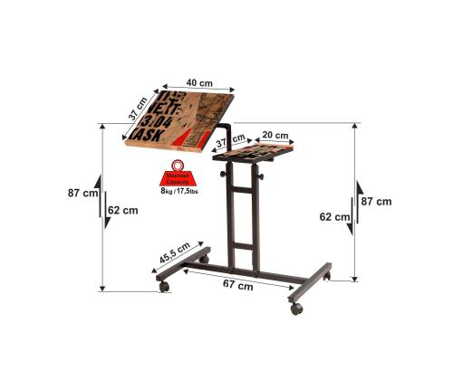 Adjustable Table Size: Width: 37 cm Height: 87 cm Depth: 40 cm