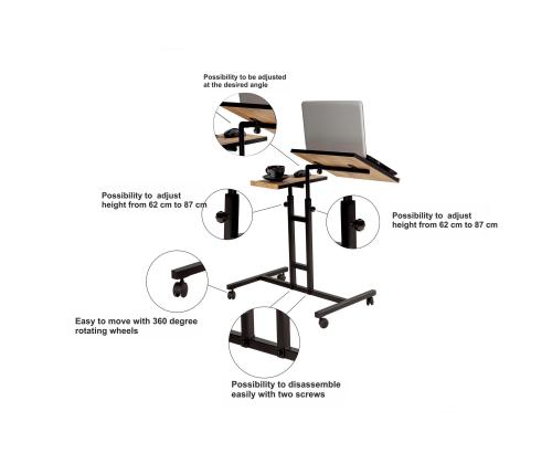 Featuring adjustable height and slope, our Laptop Standing Desk allows you to find the perfect ergonomic position for your comfort. The wheeled legs make it easy to move around, while the additional storage provides a convenient space to keep your essentials organized.