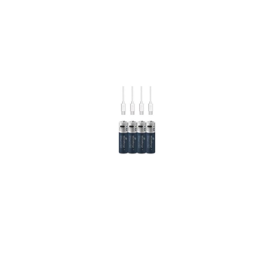 MediaRange ladattavat USB-C Li-Ion-akut, Micro AAA I 1.5V I 500mAh, 4-pakkaus