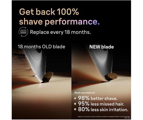 Braun recommends changing your shaver’s foil & cutter block every 18 months to maintain your shaver’s maximum performance. For a perfect shave every day.