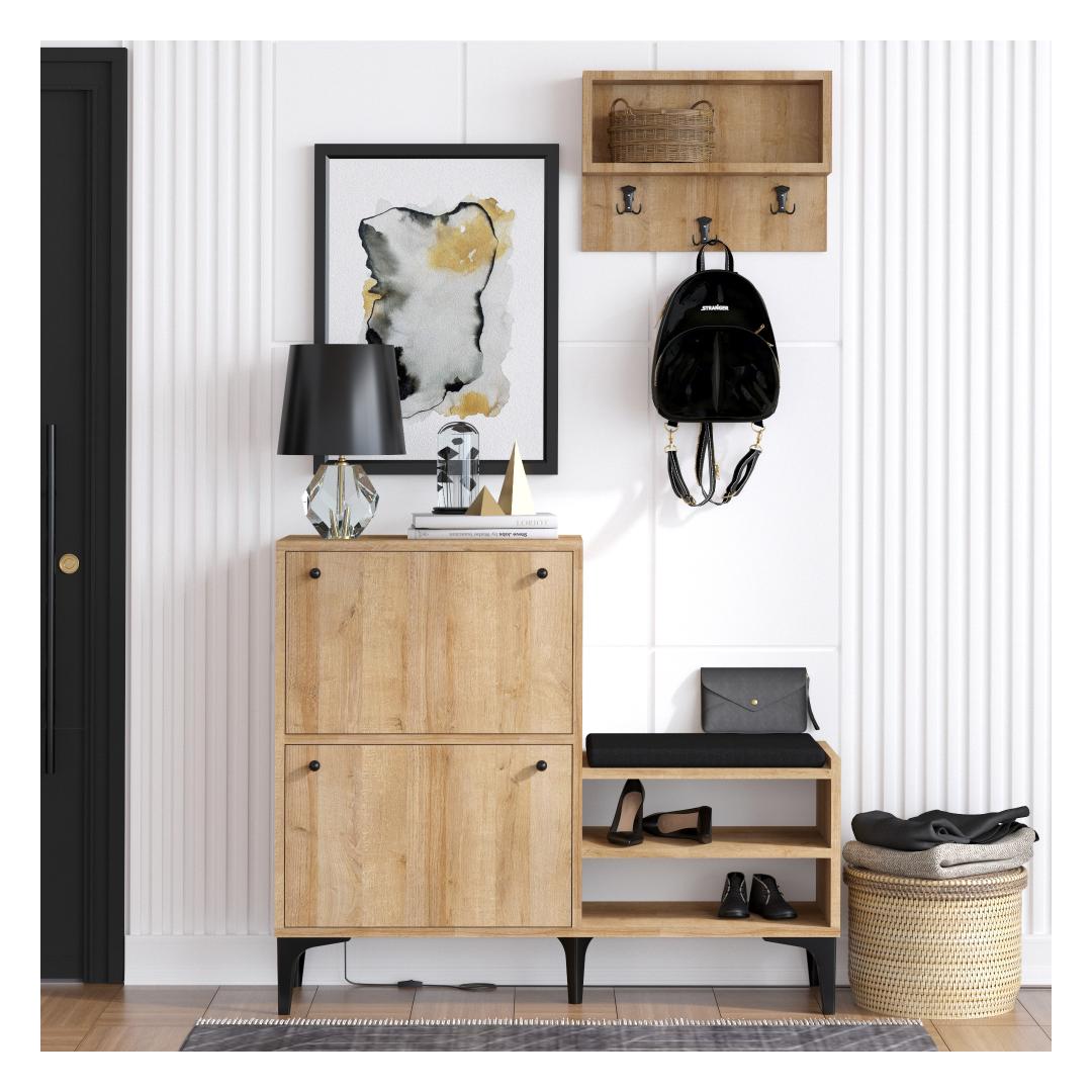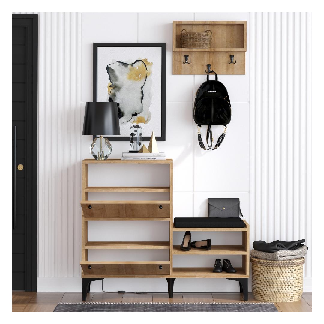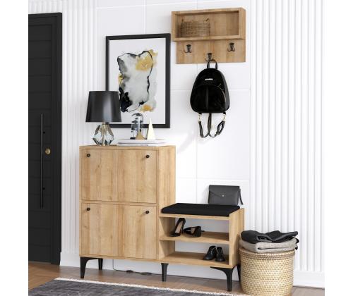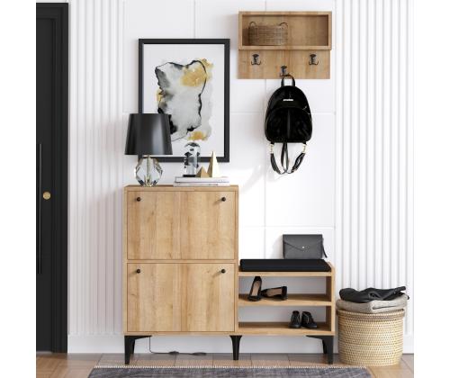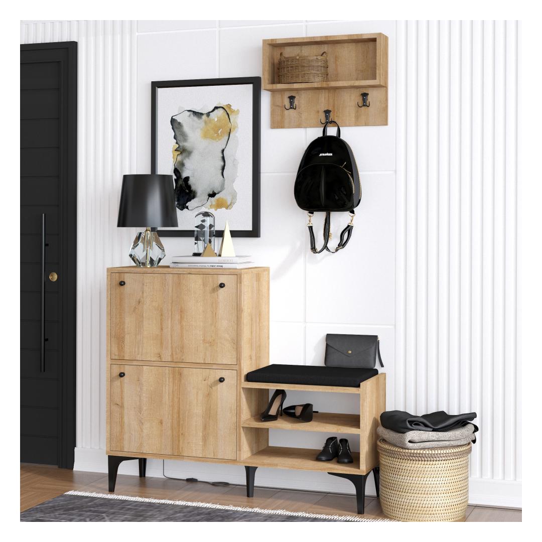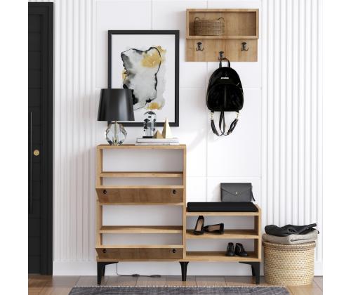 Transformeeri oma esikusse ideaalne kingakappKas olete väsinud kingade üle komistamisest kohe, kui astute uksest sisse? öelge hüvasti segadusele ja tere korraldusele meie uimastava kingakapiga. See tükk ei ole lihtsalt hoiulahendus, vaid stiili ja funktsionaalsuse avaldus. Tõstke oma ruumi elegantsi juurdeSee 100% melamiiniga kaetud puitlaastplaadist valmistatud kingakapp on valmistatud kestma. Selle tugev konstruktsioon tagab vastupidavuse, samal ajal kui elegantse tammepuidust viimistlus lisab elegantsi igasse ruumi. Olenemata sellest, kas teil on traditsiooniline, tööstuslik või skandinaavia inspiratsiooniga sisekujundus, see kapp sulandub sujuvalt, parandades teie ruumi üldist esteetikat. Püsige organiseerituna rohke hoiuruumigaArvukate riiulitega pakub see kingakapp piisavalt ruumi kõigi teie jalatsite hoiustamiseks. Enam ei pea otsima kadunud jalatseid või püüdma leida sobivat paari. Kõik on korralikult organiseeritud ja kergesti kättesaadav, säästes teie aega ja pettumust. Muutlik disain, mis sobib teie vajadusteleSee kingakapp ei hoia mitte ainult teie kingi korras, vaid pakub ka lisafunktsionaalsust. Sellega on kaasas rippuv mantlihoidja, mis võimaldab teil mugavalt üles riputada mantleid, sallid ja mütsid. Lisaks saab kapi kinnitada seinale, tagades stabiilsuse ja ohutuse. Tehnilised üksikasjad:Materjal: Materjal: Materjal: Materjal: Materjal: Materjal: Materjal: Materjal: materjal: 100% melamiiniga kaetud puitlaastplaatPaksus: 18 mmJalatsikapi suurus: Laius: 110 cm, kõrgus: 92 cm, sügavus: 35 cm.Riputatav mantliriiul Suurus: Laius: 50 cm, kõrgus: 35 cm, sügavus: 12 cm.Plastist jalad lisavad stabiilsustVärv: TammUuendage oma esikusse sisenemise ruumi meie kingakapiga ja kogege segadusteta ruumi rõõmu. Tellige kohe ja muutke oma kodu organiseerimise ja stiili paradiisiks. Värv: Oak