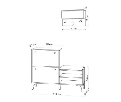 Shoe Cabinet Size: Width: 110 cm Height: 92 cm Depth: 35 cm