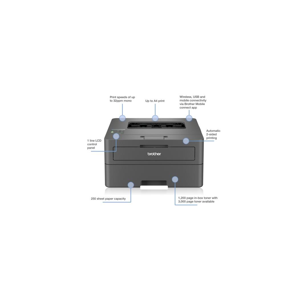Brother HL-L2445DW Tulostin Laser S/W A4 32 ppm USB Wi-Fi Ethernet LAN
