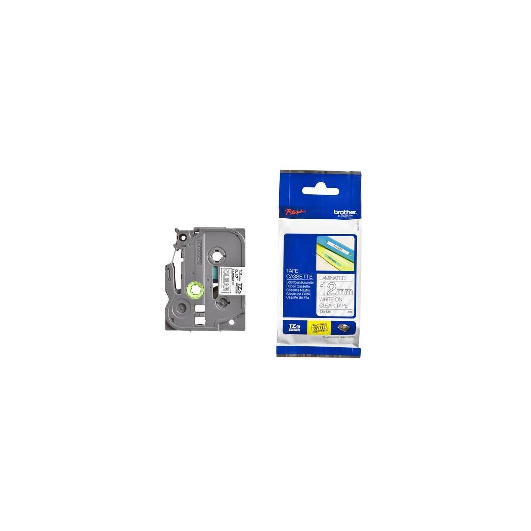 Brother TZE-135 (TZE135) laminoidut tarranauhakasetit, valkoinen kirkkaalla 12mm, 8m