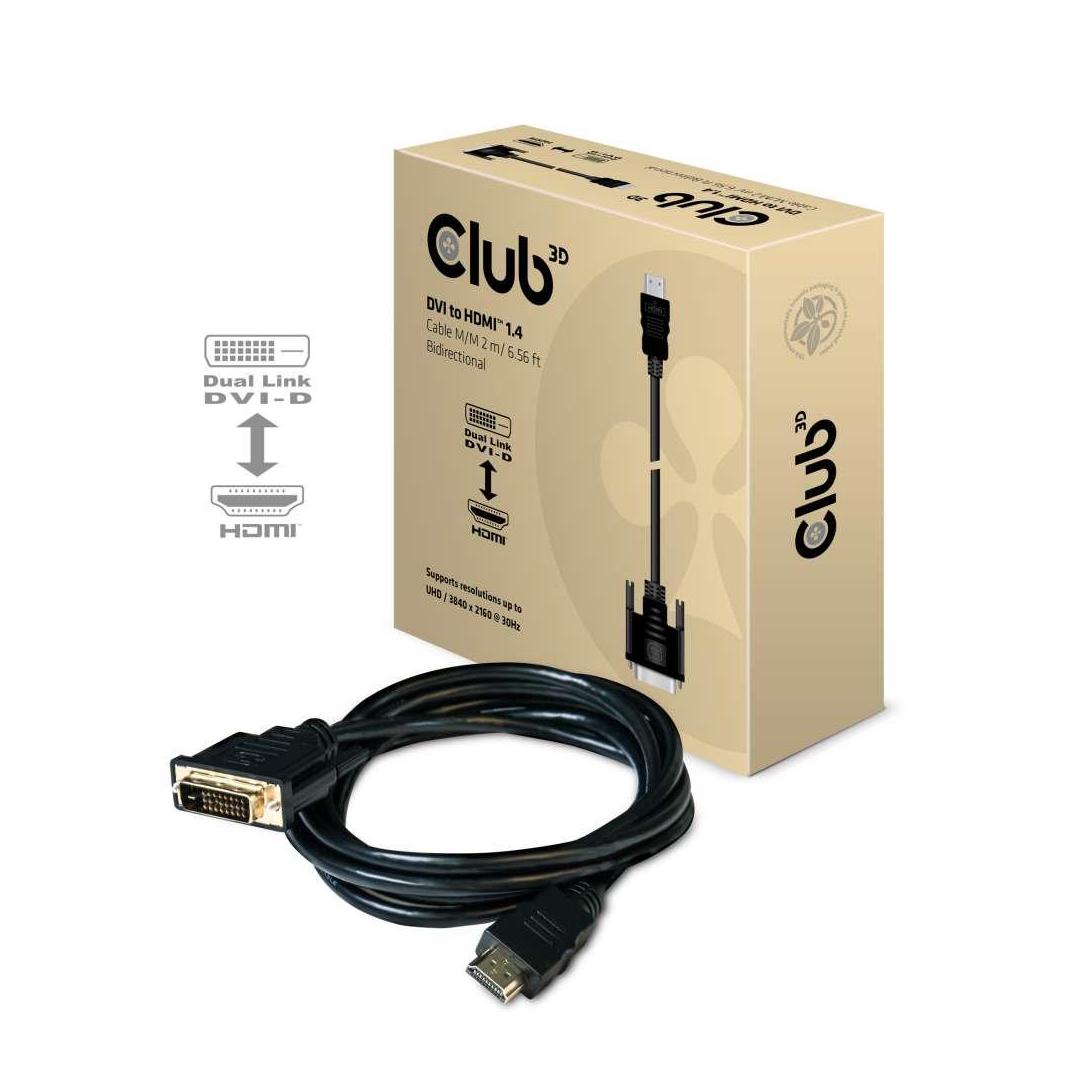 Club 3D CAC-1210 on DVI-HDMI™ 1.4 -sovitinkaapeli. Koska tämä sovitinkaapeli on täysin kaksisuuntainen, sitä voidaan käyttää myös HDMI™-DVI-sovitinkaapelina. Tämä CAC-1210-kaapeli on helpoin ratkaisu HDMI™-monitorin, projektorin tai television liittämiseen PC:n / kannettavan tietokoneen DVI-lähtöön tai DVI-monitorin, projektorin tai television liittämiseen PC:n / kannettavan tietokoneen / pelikonsolin HDMI™-lähtöön. CAC-1210 käyttää ensiluokkaisia komponentteja ja kullattuja kontakteja varmistaakseen parhaan suorituskyvyn ja maksimaalisen helppokäyttöisyyden, mikä johtaa parhaaseen käyttökokemukseen jopa UHD / 3840 x 2160 @ 30Hz -resoluutioilla.