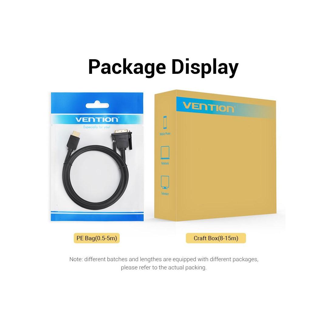VENTION cable delivers a superior signal thanks to its durable PVC outer layer, shielding, and corrosion-resistant gold-plated connectors (HDMI A Male to DVI 24+1 Male).