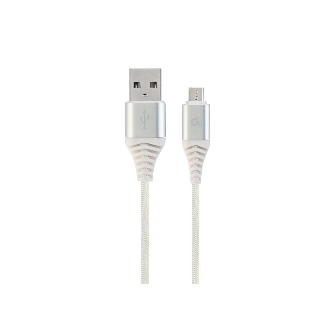Premium cotton braided Micro-USB charging and data cable, 1 m, silver/white