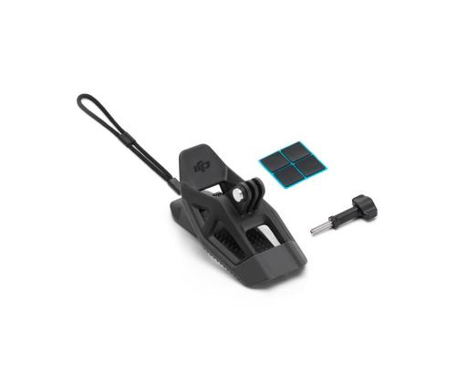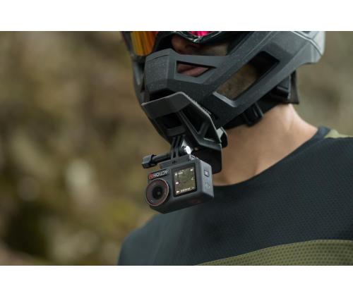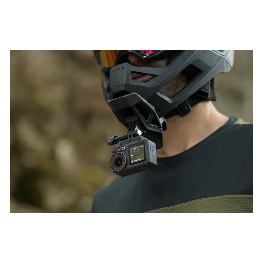 Securely mounts your camera to the chin of a helmet. It is easy to attach and detach. With adjustable tilt angles, your camera can stay forward-facing even during low-position riding.