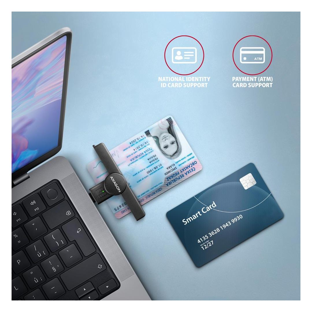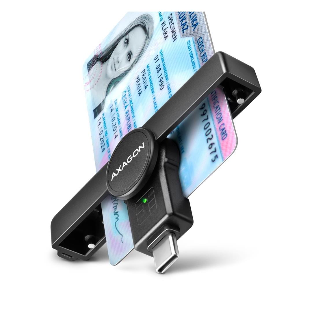Axagon CRE-SMPC USB-C Smart card/ID card PocketReader. Interface: USB Type-C. Product colour: Black. Weight: 9 g