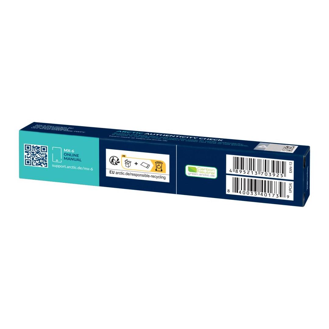 Olemme ylpeitä lämpöpastoistamme. Yli 20 vuoden kokemuksella PC-jäähdytysmarkkinoilta MX-6 on kehitetty tavoitteena tarjota ensiluokkainen tuote kohtuulliseen hintaan. Optimoitu kaava perustuu hyväksi todettuun MX-4:ään, joka on yksi maailman myydyimmistä lämpöpastoista. Painopisteenä olivat monipuoliset käyttömahdollisuudet ja helppokäyttöinen koostumus.