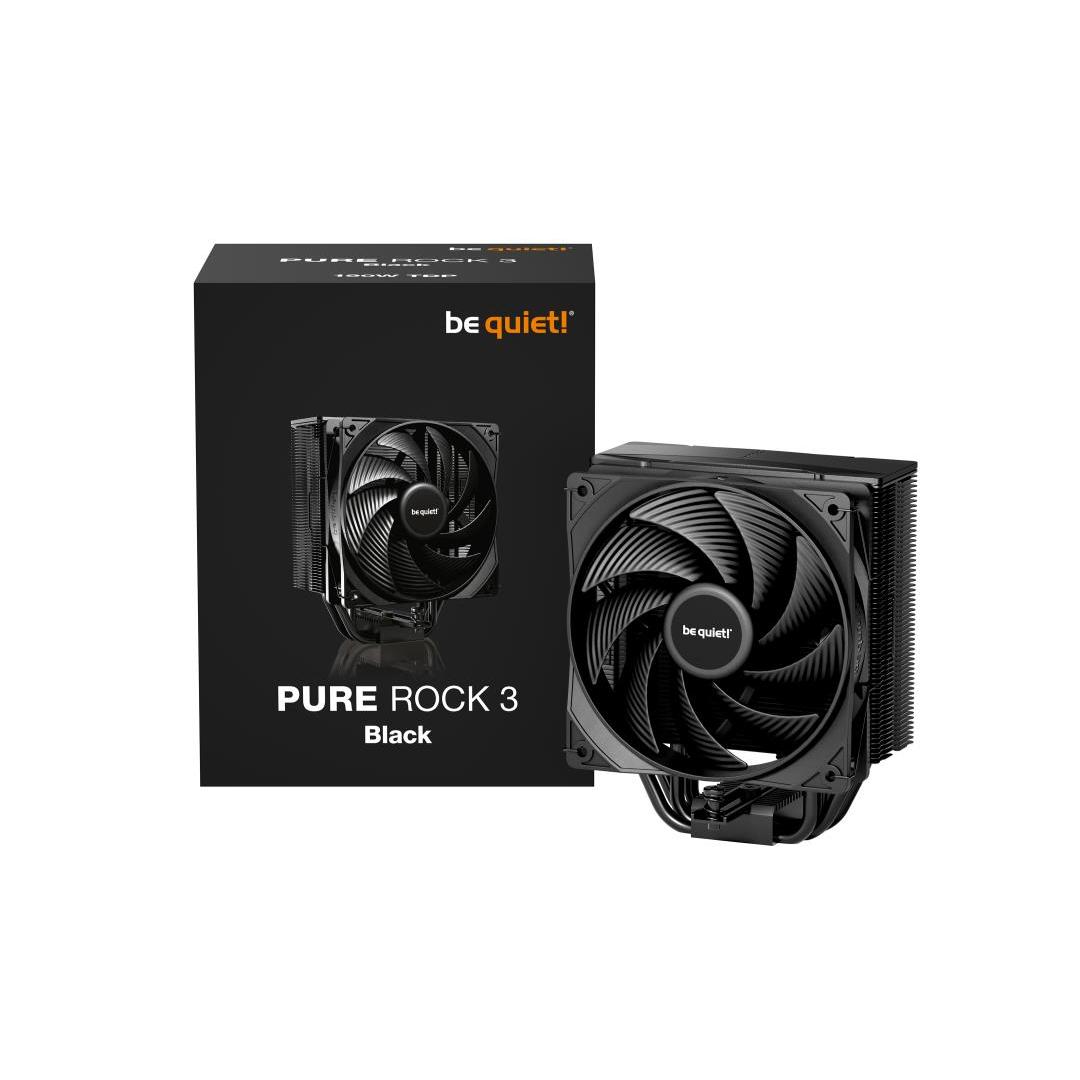 Pure Rock 3 Black|Air|LGA1150/LGA1151/LGA1155/LGA1200/LGA1700/LGA1851/SAM4/SAM5|Fan speed 2000 rpm|Air flow 59.6 cfm|Noise level, max 31.2 dB|Dimensions 71 x 124 x 154 mm|Colour Black|Weight 0.57 kg