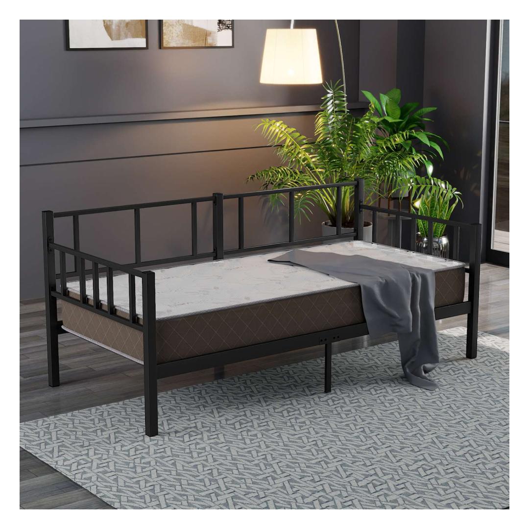 Muuda oma magamistuba hubaseks pühamuks meie kauni metallist päevavoodi abil. See elegantne ese lisab sinu ruumile mitte ainult rafineeritust, vaid pakub ka mugavat kohta lõõgastumiseks ja pärast pikka päeva välja puhkamiseks.Koge parimat mugavust ja stiiliSelle päevavoodi stiilne must metallraam kiirgab modernset ja šikki atmosfääri, muutes selle ideaalseks lisandiks igasse kaasaegsesse magamistoa sisustusse. Tugev konstruktsioon tagab vastupidavuse ja pikaealisuse, nii et saad seda eset nautida aastaid.Loo oma kodus lõõgastav pelgupaikOlgu see siis stiilne istumisvõimalus päeva jooksul või mugav voodi öösel, see päevavoodi pakub mitmekesisust ja funktsionaalsust. Generoossed mõõtmed pakuvad piisavalt ruumi lõõgastumiseks või magamiseks, samas kui kõrge peatoe ja jalatoe disain lisavad elegantsi.Tehnilised andmed:Tootetüüp: PäevavoodiMaterjal: 100% MetallLaius: 100 cmSügavus: 200 cmPeatoe kõrgus: 83 cmJalatoe kõrgus: 71 cmJala kõrgus: 31,5 cmVärv: MustÄra jäta kasutamata võimalust tõsta oma magamistuba selle kauni metallist päevavoodiga. Tellige oma täna ja looge oma kodus luksuslik pelgupaik. Värv: Black
