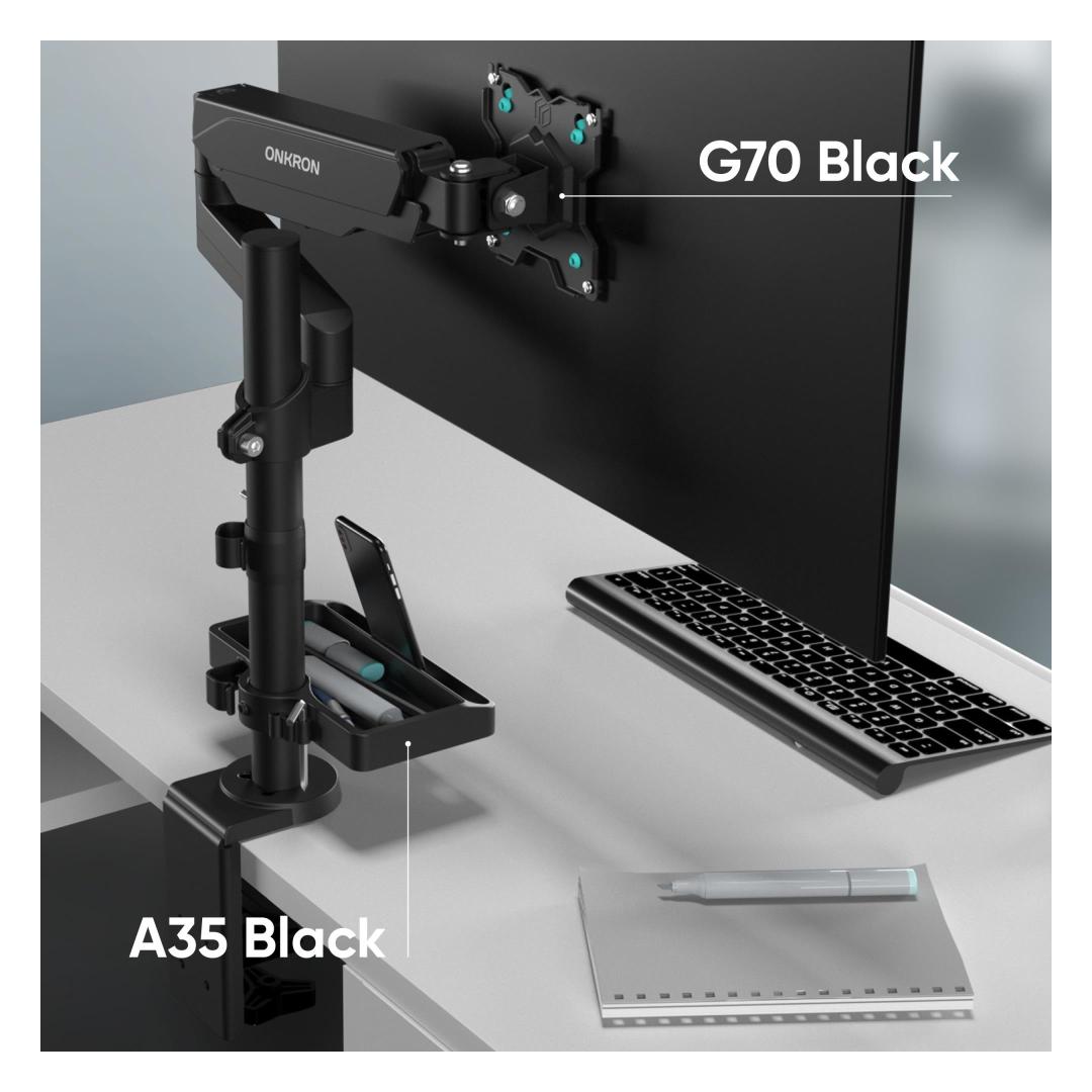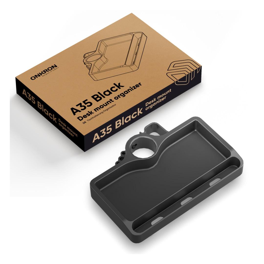 Onkron A35 on järjestyshylly, joka on yhteensopiva seuraavien ONKRON-tuotteiden kanssa: D101 , D121 , D221 , D208 , G70 , G140 , G280 , PT2 , PT3 , TS1220 , TS5065. Voit käyttää järjestyshyllyä matkapuhelimen laturiasemana tai sijoittaa siihen kyniä, kyniä, post-it-lappuja jne. Se on näppärä lisä ONKRON AV -asennukseesi.