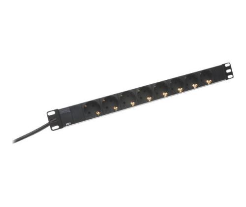 DIGITUS 48,3cm 19inch Outlet stripe aluminium 8x Schuko black 16A 4000W In 1x Schuko incl.metal mount kit DIGITUS 48,3cm 19inch Outlet stripe aluminium 8x Schuko black 16A 4000W In 1x Schuko incl.metal mount kit