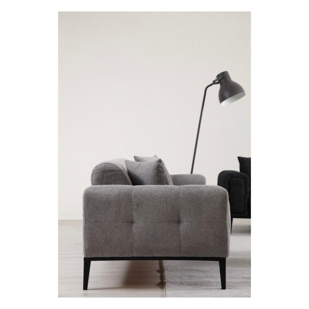 With a turnable back mechanism, this sofa-bed easily transforms into a comfortable sleeping space for overnight guests. The fixed sitting cushion and back cushion offer added convenience, while the black wooden base and legs add a touch of elegance to any room. The light grey color adds a modern touch to your decor, making this sofa-bed a statement piece in any space.