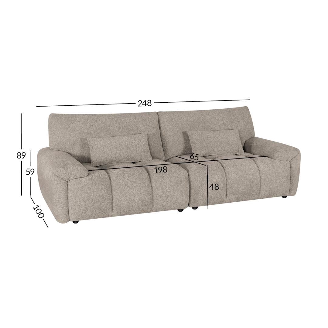 Sohva BARBARA 3-istuttava 248x100xH89cm, vaaleanruskea