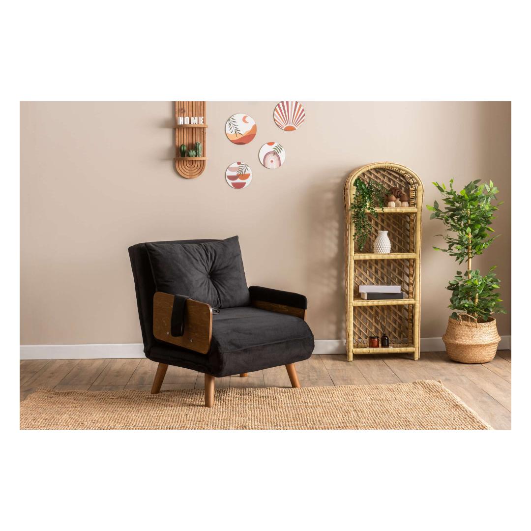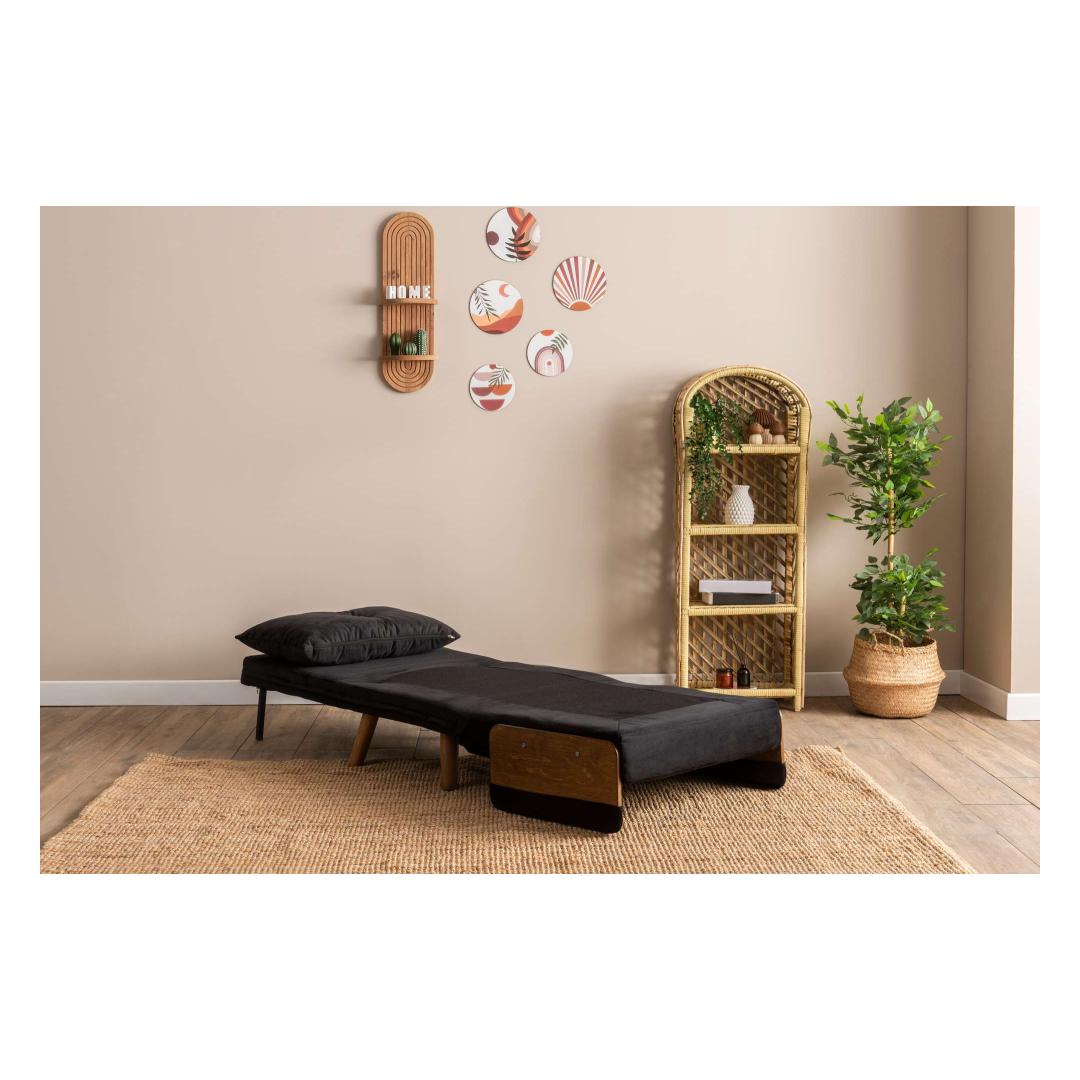 Measuring 77 cm x 70 cm x 82 cm as a sofa and 190 x 70 cm as a bed, this 1-seat sofa-bed is the perfect space-saving solution for small apartments or guest rooms. The single seat design ensures that you have plenty of room to stretch out and relax, while the sturdy metal frame and wooden arm provide durability and support.