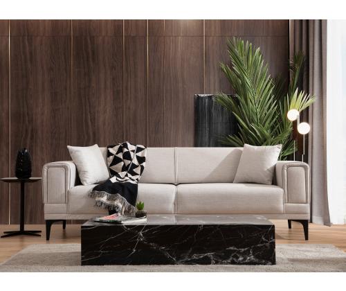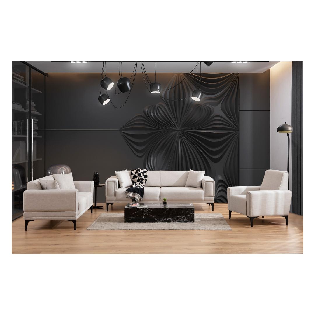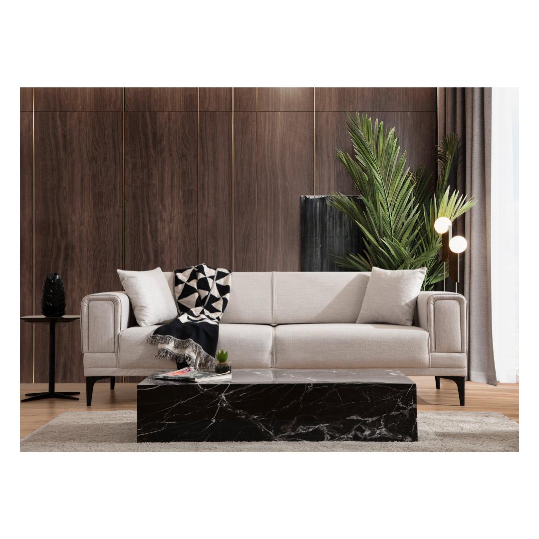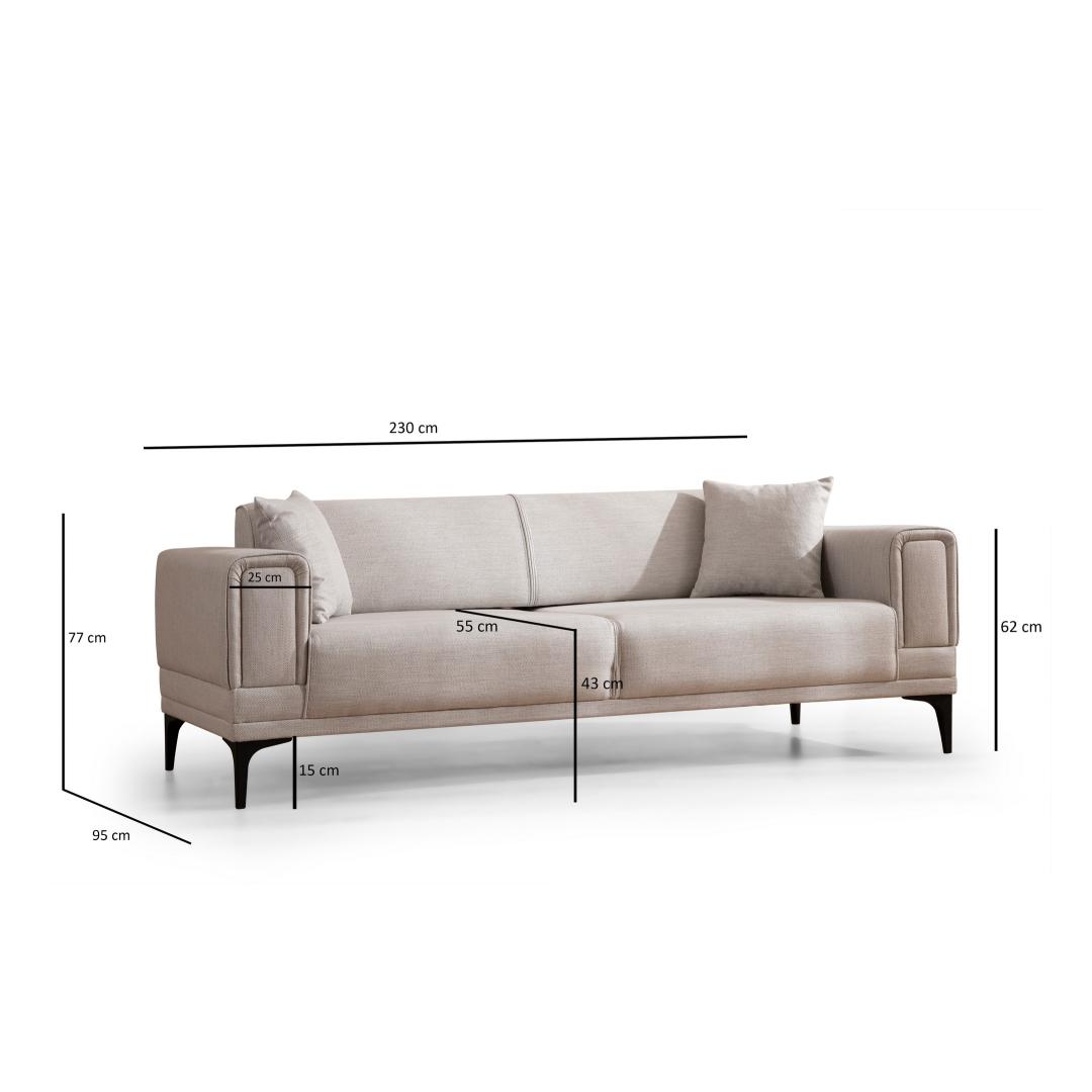 Transform your living room with our 3-Seat Sofa-Bed, a versatile and stylish piece that will elevate your space to new heights. Made with a sturdy frame of BEECH WOOD and CHIPBOARD, this sofa-bed is built to last for years to come. The 100% POLYESTER fabric adds a touch of elegance and comfort to your home, creating a cozy atmosphere for you and your loved ones to relax in.