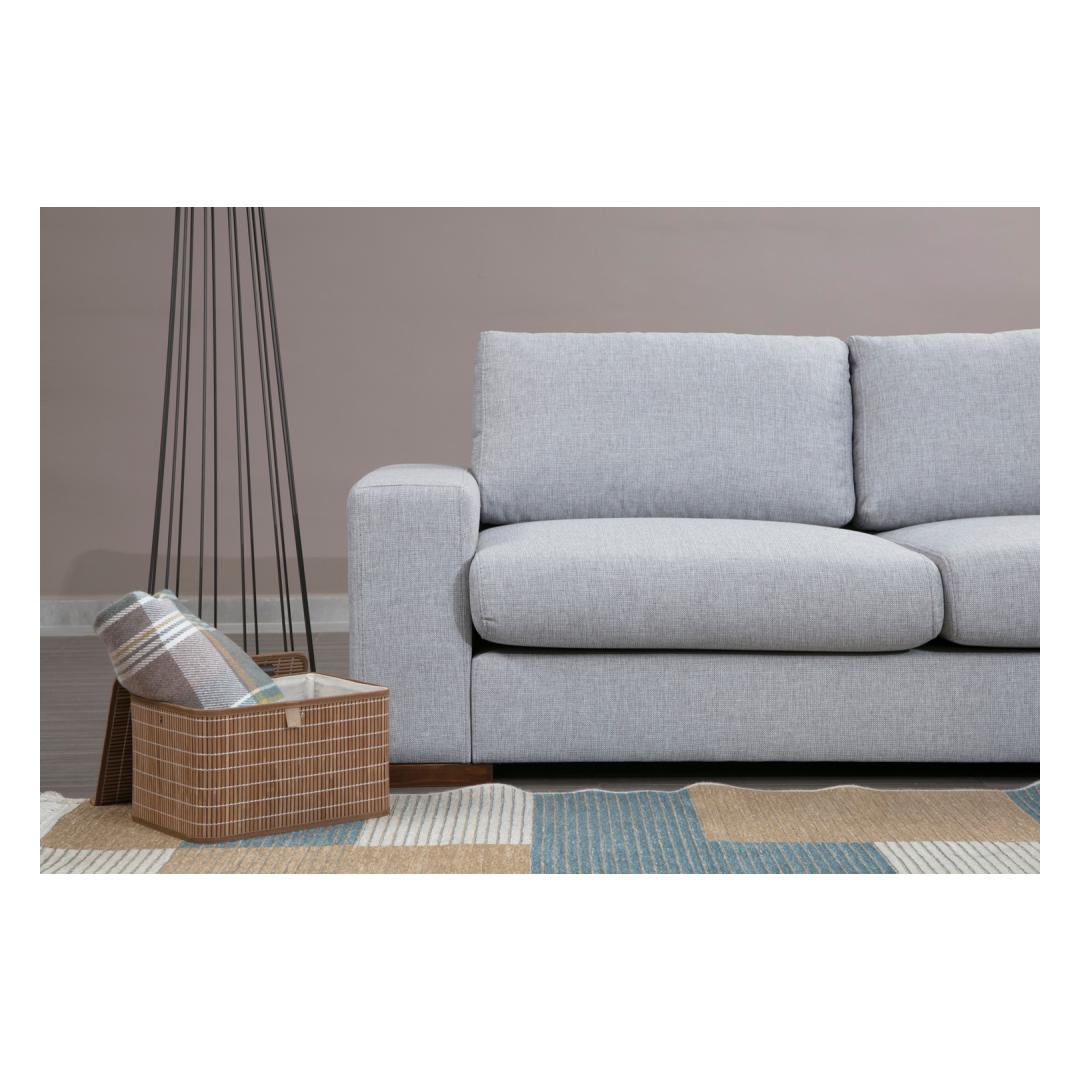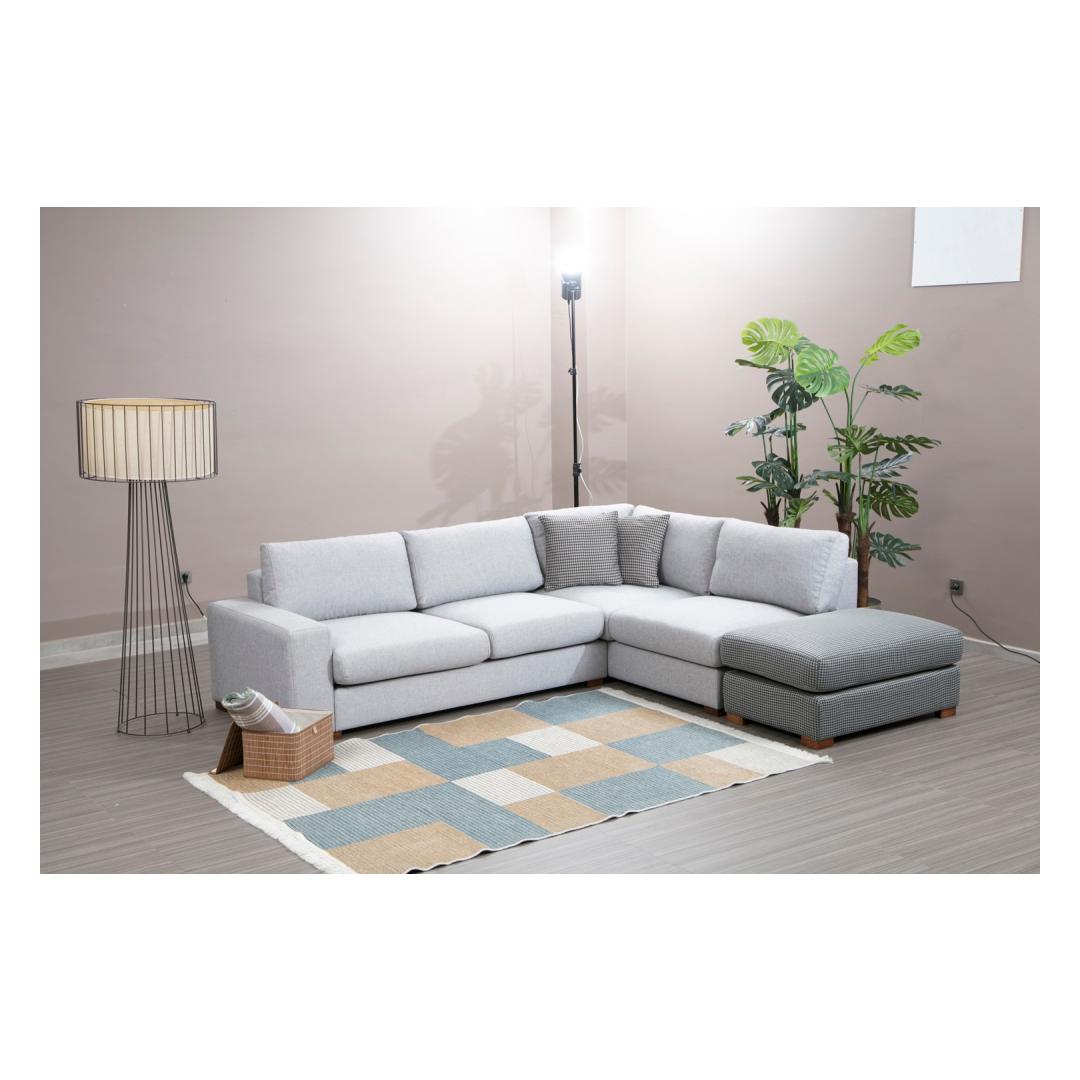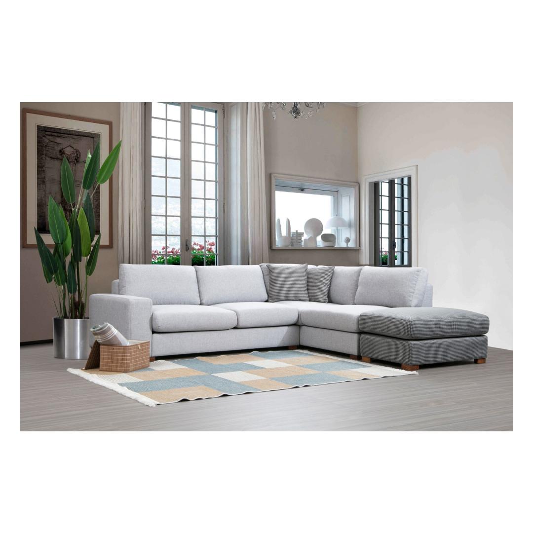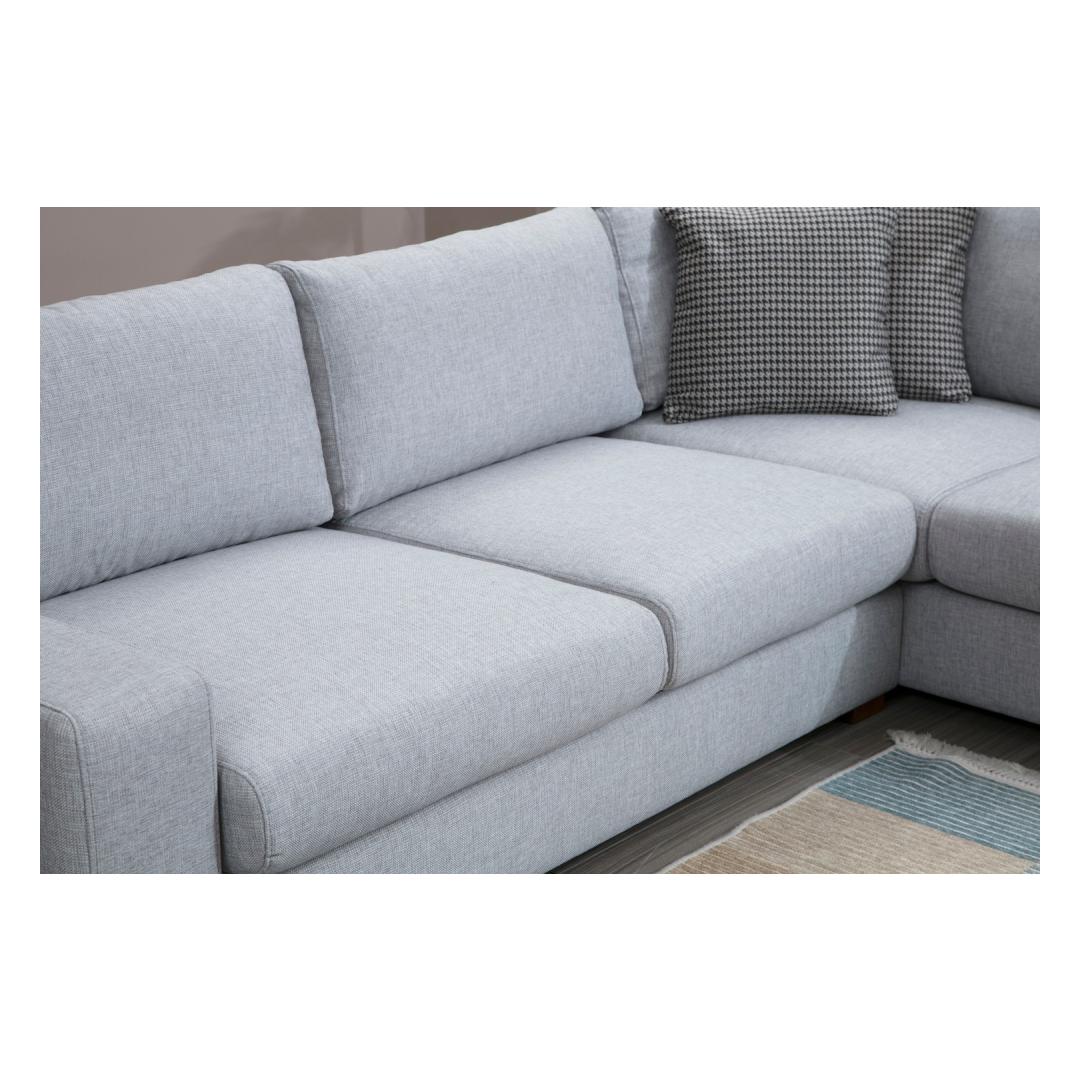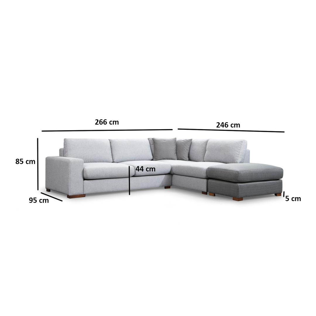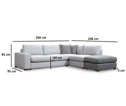 Tutvustame meie uimastavat nurgadiivanit, mis on meistriteos, mis muudab teie eluruumi mugavuse ja stiili paradiisiks. Võrratu mugavus ja elegantsVajutage meie nurgadiivani pehmete padjadesse ja kogege sellist mugavust, mida te pole kunagi varem kogenud. Täpse täpsusega valmistatud diivan on loodud pakkuma ülimat lõõgastumise kogemust. Selle avarad mõõtmed ja ergonoomiline disain tagavad, et teie ja teie lähedased saavad lõõgastuda absoluutses luksuses.Kõrgepärane käsitööMeie nurgadiivan on valmistatud pöögipuu ja puitlaastplaadi kombinatsioonist, mille tugev raam tagab vastupidavuse ja pikaealisuse. 100% polüesterkangas lisab rafineeritust, samal ajal kui pähklipuust jalad annavad ajatu elegantsi, mis tõstab iga ruumi esile. Muudatlik ja praktilineKaasasolev pouf lisab teie istumiskorraldusele mitmekülgsust, võimaldades teil kohandada paigutust vastavalt teie vajadustele. Kaasaskantavad istumis- ja seljapadjad pakuvad lisamugavust ja neid saab hõlpsasti ümber paigutada, et teil oleks mugavam. Lisaks tagab kuivpuhastatav kangas hõlpsa hoolduse, nii et saate hoida oma diivanit aastaid laitmatu välimusega. Tehnilised üksikasjad:Raam: Puit: Pöögipuit / puitlaastplaatKangas: Materjal: 100% polüesterPikkus: 246 cm x 266 cmLaius: 95 cmKõrgus: 85 cmPufi suurus: Pikkus: 102 cm, laius: 66 cm, kõrgus: 44 cm.Vaht: 18 DNS kõva hall vaht / vedru / 24 DNS sulg istumiseks60 % Snipped Foam / 40 % Silicone Foam selja jaoksPadi: 60% Snipped Foam / 40% Silicone FoamSuurus: 45 cm x 45 cm (2 tükki)Jalad: Pähklipuust jalad: Pähklipuust jaladVahu kõrgus: 26 cmVärv: Hall ja helehallKogege mugavuse ja stiili kehastust meie nurgadiivaniga. Uuendage oma eluruumi juba täna! Värv: Grey Light Grey