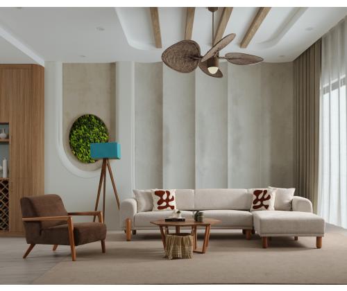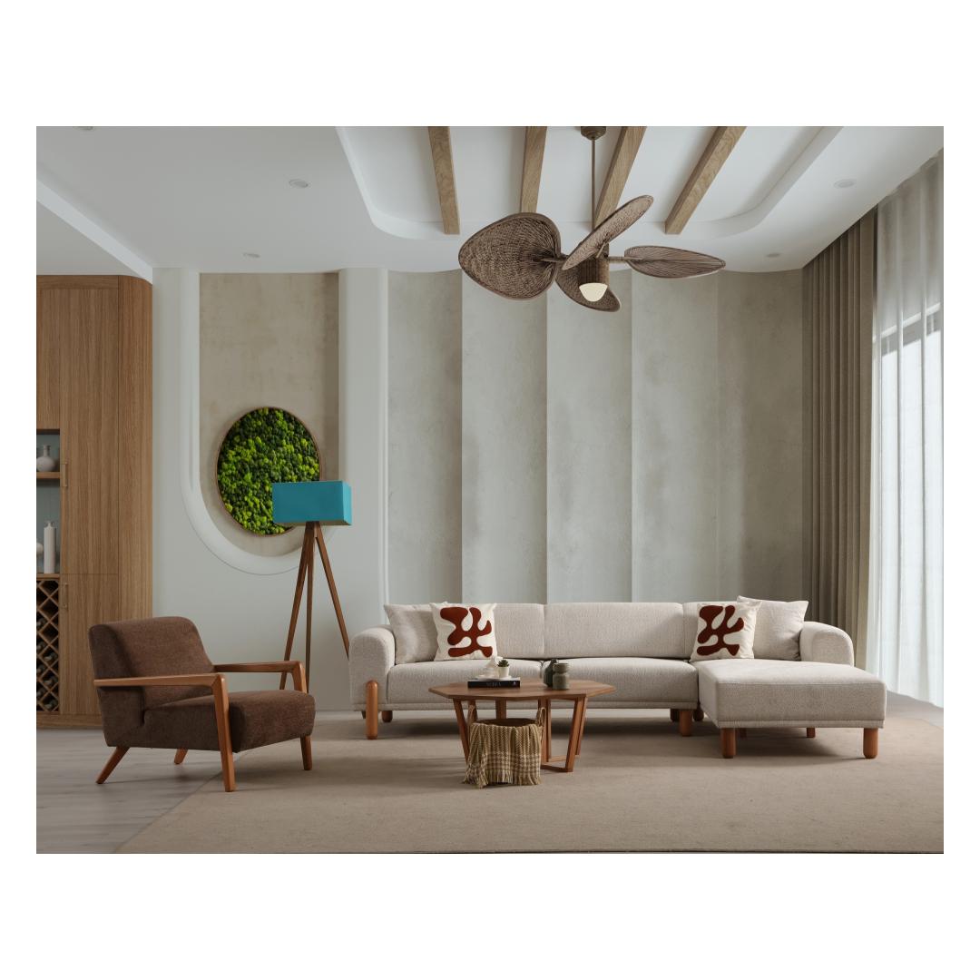 The Corner Sofa-Bed is designed with elegance and sophistication in mind. The cream color fabric adds a touch of luxury to any room, while the black wooden base and legs provide a modern contrast. The sleek and streamlined design will instantly elevate your home decor.