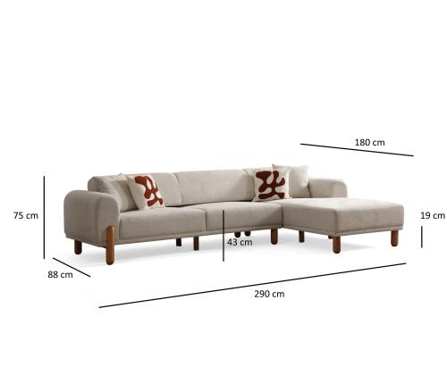 Length: 290 x 180 cm Width: 88 cm Height: 75 cm
