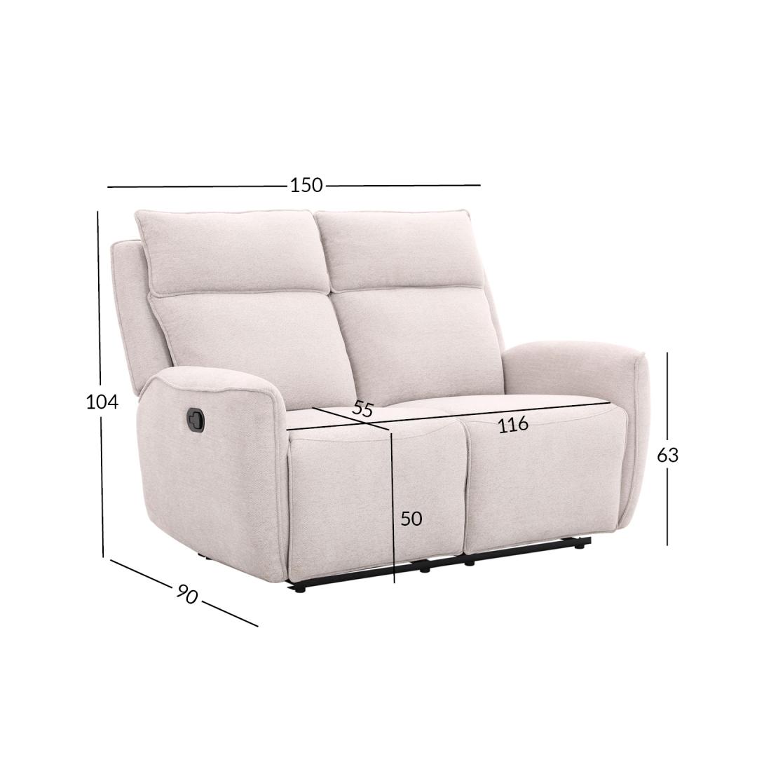 Sohva MAREN 2-istuttava manuaalinen lepotuoli 150x90xH104cm, beige väri