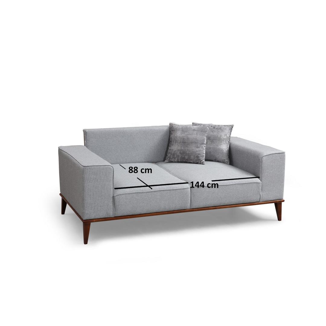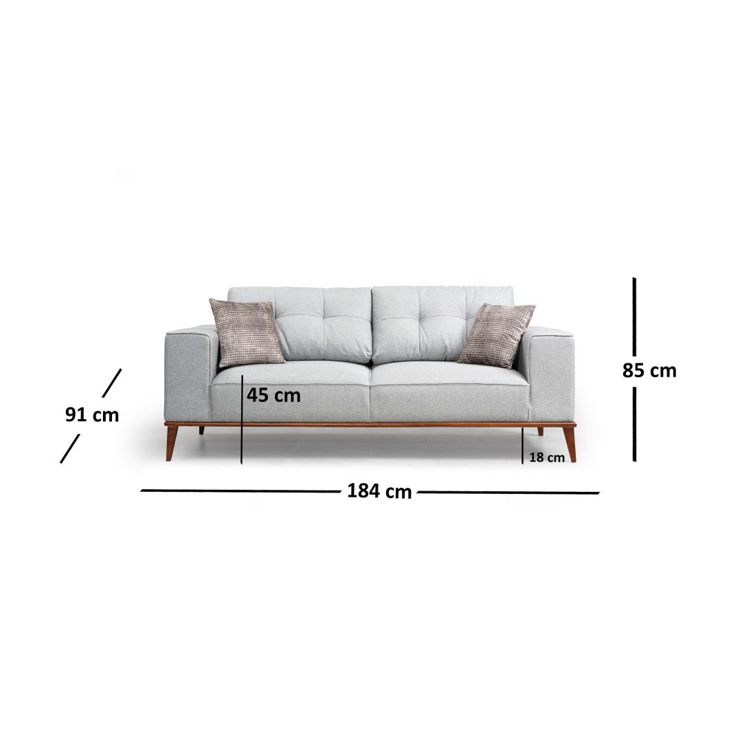 Esittelyssä 2-paikkainen vuodesohva: täydellinen yhdistelmä tyyliä, mukavuutta ja toiminnallisuutta. Vapauta tyylikkyysTämä sohvasänky huokuu eleganssia ja hienostuneisuutta tyylikkään muotoilunsa ja yksivärisen harmaan värinsä ansiosta. Se täydentää vaivattomasti mitä tahansa sisustusta, olipa kyseessä sitten moderni asunto tai kodikas mökki. Koe äärimmäinen mukavuusLeppaa muhkeisiin tyynyihin ja tunne 100-prosenttisen polyesterikankaan pehmeys ihoasi vasten. 28 dns:n pehmeä harmaa vaahtomuoviverhoilu ja 24 dns:n höyhenet tarjoavat vertaansa vailla olevaa mukavuutta, joten tämä vuodesohva on täydellinen paikka rentoutua ja virkistyä.Erittäin monipuolinen ja käytännöllinenJos tarvitset lisävuodetta vieraille, käännä vuodesohva yksinkertaisesti auki, jolloin esiin paljastuu tilava ja mukava vuode, jonka pituus on 144 cm ja leveys 88 cm. Se on täydellinen improvisoituja yökyläilyjä tai odottamattomia vieraita varten. Rakennettu kestämäänKestävästä pyökki- ja lastulevyrungosta valmistettu vuodesohva on rakennettu kestämään. Pähkinäpähkinäiset jalat lisäävät tyylikkyyttä ja tarjoavat samalla erinomaista vakautta. Tekniset yksityiskohdat: Puu: Pyökki / LastulevyKangas: Kangas: 100 % polyesteriPituus: 184 cmLeveys: 91 cmKorkeus: 85 cmSängyn pituus: 144 cmSängyn leveys: 88 cmTyyny: 28 DNA pehmeä harmaa vaahtomuovi / 24 DNA höyhenetJousi keskellä istuimessa60 % Snipe-vaahtomuovi / 40 % silikonivaahtomuovi selkäpuolen pehmusteenaTyyny: koot: 45 x 45 cm (2 kpl)Kiinteä istuintyyny / Irrotettava selkätyynyKuivapuhdistettava kangasJalat: 60% Snipe Foam / 40% Silicone Foam. Älä missaa tätä täydellistä lisäystä kotiisi. Älä missaa tätä ainutlaatuista lisäystä olohuoneeseesi. Tilaa nyt ja muuta olohuoneesi rentoutumisen paratiisiksi. Väri: harmaa
