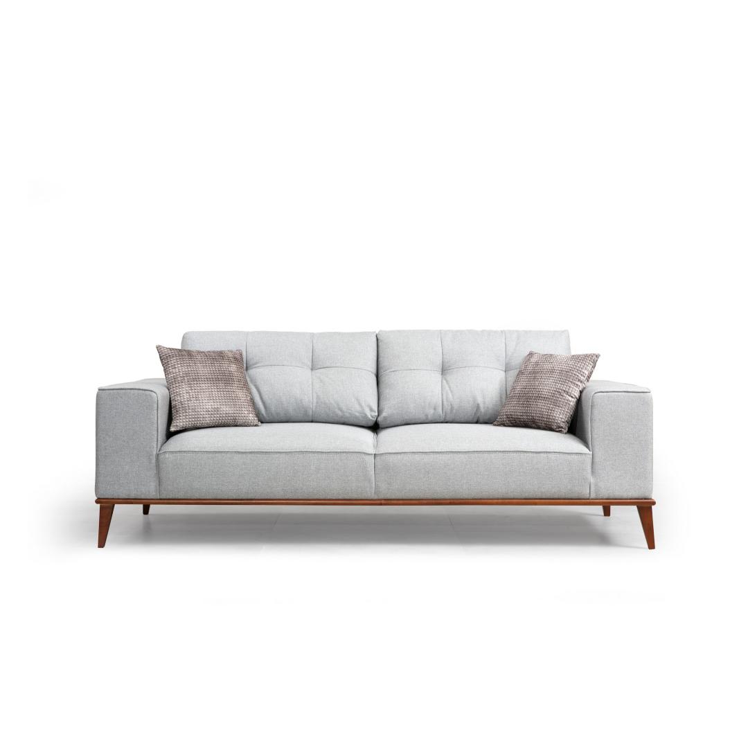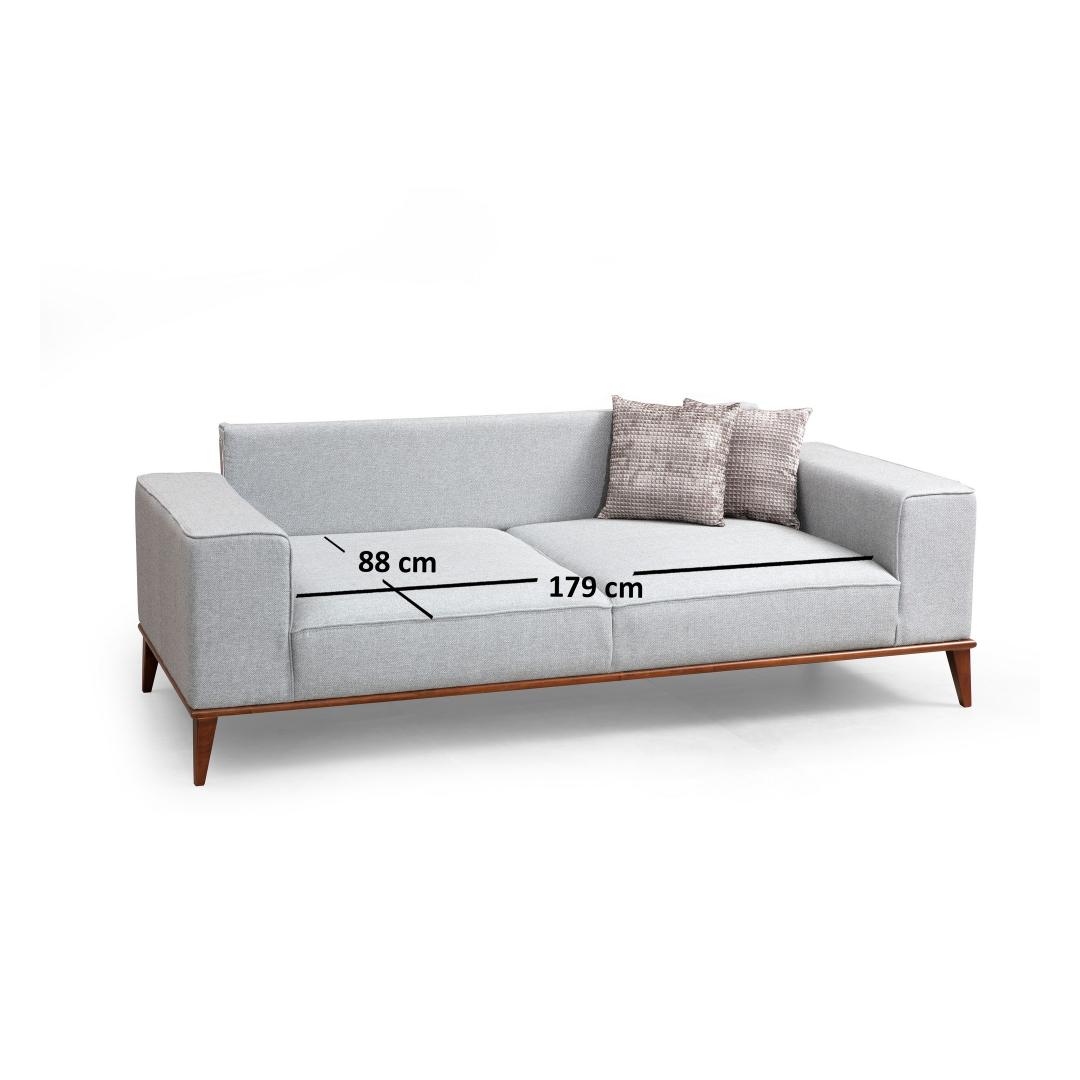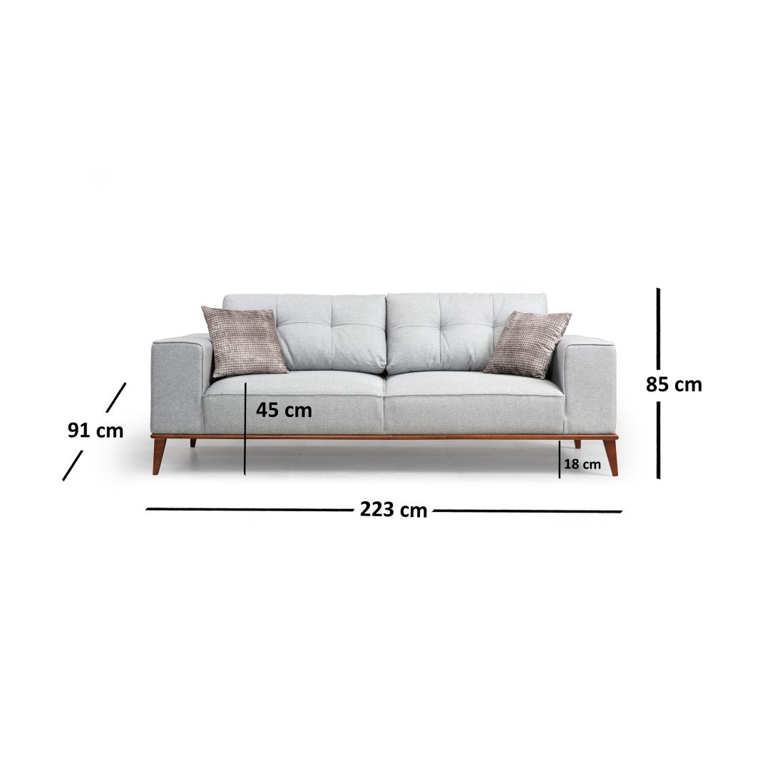 Esittelemme upean 3-paikkaisen vuodesohvan, joka on täydellinen yhdistelmä tyyliä ja toiminnallisuutta. Verraton mukavuus ja tyylikkyysKokeile äärimmäistä mukavuutta 3-paikkaisella sohvasängyllämme, joka on suunniteltu tarjoamaan sinulle viihtyisän ja ylellisen istumakokemuksen. Sen pehmeä harmaa vaahtomuovi ja höyhen- ja jousiyhdistelmä takaavat vertaansa vailla olevan mukavuuden, joten se on täydellinen paikka rentoutua ja rentoutua pitkän päivän jälkeen.Erittäin monipuolinen ja käytännöllinenSohvasänkymme ei ole vain tyylikäs lisä asuintilaasi, vaan myös käytännöllinen ratkaisu vieraiden viihdyttämiseen. Sen taaksepäin kääntyvän selkänojamekanismin ansiosta se muuntuu vaivattomasti mukavaksi sängyksi, joka takaa levolliset yöunet läheisillesi. Ajaton muotoiluTämä vuodesohva huokuu eleganssia ja hienostuneisuutta massiiviharmaan värinsä ja pähkinäpuun jalkojensa ansiosta. Sen skandinaavisesti inspiroima muotoilu tuo ripauksen modernia mihin tahansa huoneeseen, joten se sopii täydellisesti sekä nykyaikaiseen että perinteiseen sisustukseen. Pyökki/lastulevy kestävyyden ja vakauden takaamiseksi.Kangas: 100 % polyesteriä, kuivapesu helpottaa huoltoa.Mitat: Pituus: 223 cm, Leveys: 91 cm, Korkeus: 85 cm.Pituus: 179 cm, Leveys: 88 cmTyyny: 28 DNA pehmeää harmaata vaahtomuovia / 24 DNA kiinnike/jouset istuimelleSelkätyyny: 60% vaahtomuovi/40% silikonivaahtomuovityyny maksimaalisen mukavuuden takaamiseksiTyynyn koko: 45 x 45 cm (2 kpl)Sohvajärjestelmä, jossa on liukuva selkänojamekanismi monikäyttöisyyden takaamiseksiKiinteä istuintyyny ja irrotettava selkänojatyyny mukavuuden takaamiseksiJalat: Tyynyn korkeus: 27 cm optimaalisen tuen takaamiseksiVäri: Tyylikäs harmaa sävy sopii kaikkiin sisustuksiinKonsepti. Väri: harmaa