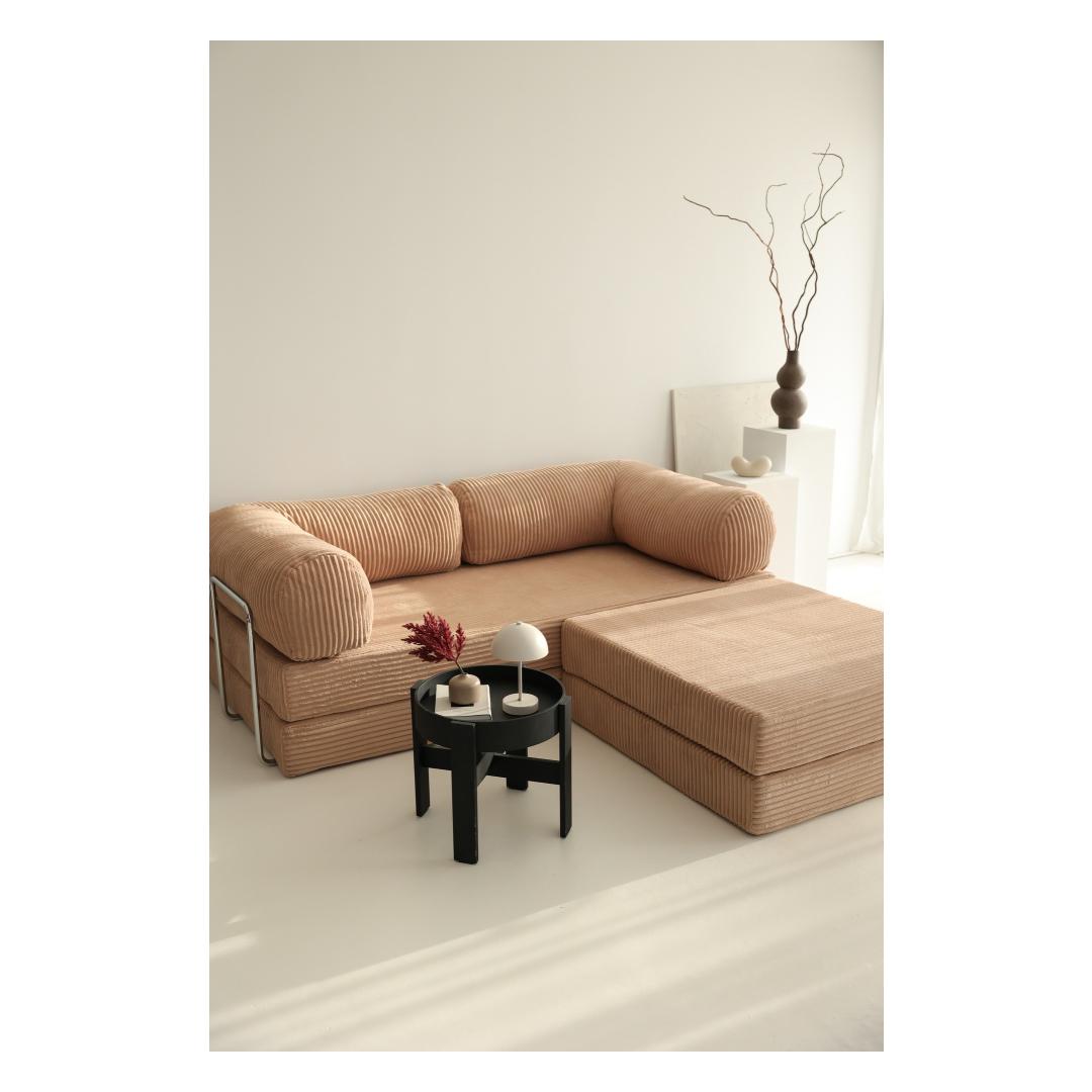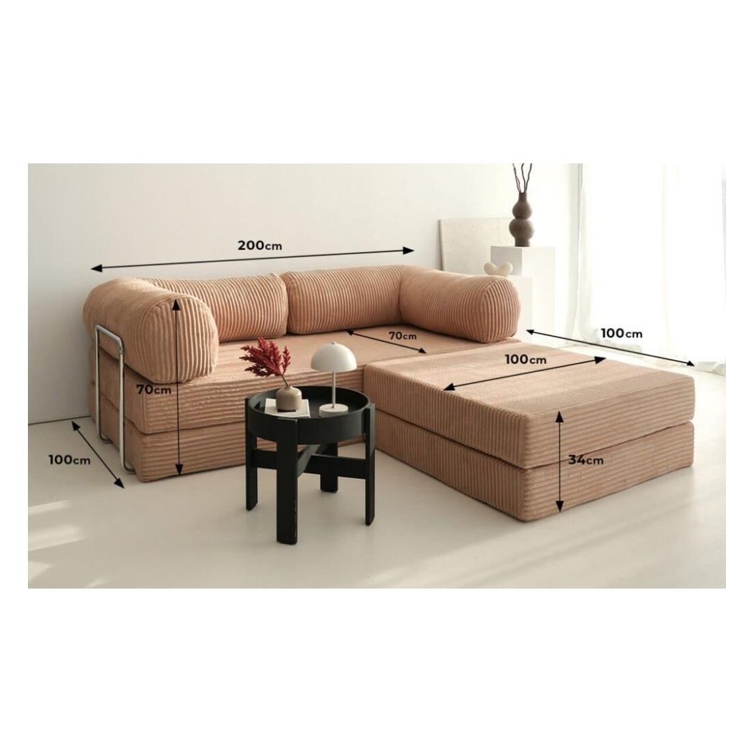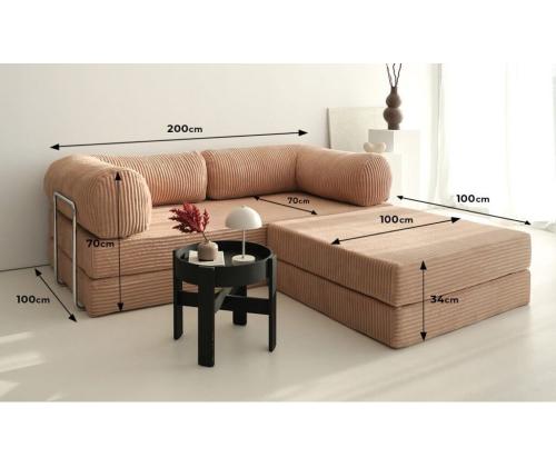 Muuda oma eluruum luksusliku ja mitmekesise nurgadiivani-voodiga, mis on valmistatud kaunilt pruunist sametkangast. See elegantne ese lisab sinu koju mitte ainult rafineerituse, vaid pakub ka ideaalset lahendust külaliste majutamiseks või mugavaks lõõgastumiseks.Koge äärmist mugavust ja stiiliSelle diivani-voodi 100% PES SAMETkangas on mitte ainult pehme puudutusele, vaid ka vastupidav ja lihtne hooldada. 30 DNS pehme vaht, 30 DNS sulevaht ja kiudtäidis tagavad maksimaalse mugavuse ja toe, olgu sa siis istumas või magamas. 18 cm seljatoe padja ja kaasasolevate 2 padja lisamine toob sellesse juba kutsuvasse tükki veelgi rohkem hubasust.Mitmekesine ja praktiline disainDiivani voodi suurus on 100 cm laius, 200 cm kõrgus ja 70 cm sügavus, mistõttu see muundub hõlpsasti mugavaks voodiks ööbivatele külalistele. Diivani suurus on 100 cm laius, 100 cm kõrgus ja 34 cm sügavus, mis teeb selle ideaalseks väiksematesse ruumidesse, pakkudes samas piisavalt istumiskohti. 34 cm istme kõrgus tagab mugava lõõgastumise kõigile.Tehnilised andmed:Kangas: 100% PES SAMETVoodi suurus: Laius: 100 cm, Kõrgus: 200 cm, Sügavus: 70 cmDiivani suurus: Laius: 100 cm, Kõrgus: 100 cm, Sügavus: 34 cmIstme kõrgus: 34 cm30 DNS pehme vaht / 30 DNS sulevaht / Kiud 34 cm18 cm seljatoe padiKaasas 2 tükki patjaVärv: Pruun Värv: Brown