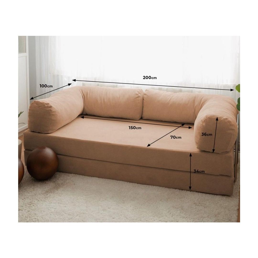 Muuda oma elutuba hubaseks pelgupaigaks meie luksusliku 3-kohalise diivanvoodi abil, mis on valmistatud kaunilt pruunist sametist. See mitmekülgne mööbliese ei ole mitte ainult diivan, vaid ka mugav voodi sinu külalistele.Mugavus ja stiil koosSelle diivanvoodi 100% PES SAMET kangas on mitte ainult pehme puudutusele, vaid lisab ka elegantsi sinu ruumile. 30 DNS pehme vaht, 30 DNS sulevaht ja kiudtäidis tagavad maksimaalse mugavuse, olgu sa siis istumas või magamas. 18 cm seljatoe padja pakub suurepärast tuge seljale, samas kui 2 kaasasolevat patja lisavad veelgi rohkem hubasust.Ruumi säästev lahendus100 cm laiuse ja 70 cm sügavusega diivanvoodi on ideaalne väikeste ruumide jaoks, kus iga sentimeeter loeb. Kui vajad oma külalistele lisavoodit, lihtsalt laota see lahti mugavaks magamisruumiks, mille kõrgus on 200 cm.Tehnilised andmed:Kangas: 100% PES SAMETLaius: 100 cmKõrgus: 200 cmSügavus: 70 cmIste kõrgus: 34 cm30 DNS pehme vaht / 30 DNS sulevaht / Kiud 34 cm18 cm seljatoe padiKaasas 2 patjaVärv: Pruun Värv: Brown