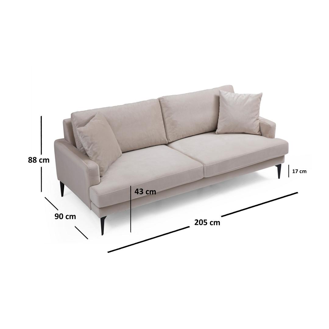 Tutvustame meie suurepärast 3-kohalist diivanit, mis on meistriteos, mis muudab teie eluruumi mugavuse ja stiili paradiisiks. Võrratu mugavus ja elegantsNautige meie 3-kohalise diivani luksuslikku embust, mis on hoolikalt valmistatud, et pakkuda teile ülimat istumiskogemust. Vajutage pehmete padjadesse, mis on täidetud pehme halli vahu ja sulgede kombinatsiooniga, mis tagab võrratu mugavuse. Nopitud vaht- ja silikoonvahust seljatugi tagab optimaalse toe, mis võimaldab teil pärast pikka päeva lõõgastuda ja lõõgastuda.Ajatu ilu ja mitmekülgsusOma soliidse beeži värvi ja elegantse disainiga sulandub meie 3-istmeline diivan vaevata mis tahes sisekujundusse, olgu see siis moodne korter või hubane suvila. Hotell ja industriaalne kontseptsioon lisab sellele elegantsi, muutes selle teie elutoa ideaalseks keskmeks. Kindlus ja mugavusMeie diivan on valmistatud tugevast pöögipuidust ja puitlaastplaadist raamiga, mis tagab pikaajalise vastupidavuse. Kuivpuhastatav kangas tagab hõlpsa hoolduse, mis võimaldab teil hoida seda aastaid laitmatuna. Kaasaskantavad istumis- ja seljapadjad pakuvad lisamugavust, võimaldades neid vastavalt oma eelistustele ümber paigutada. Tehnilised üksikasjad:Raam: Puit: Pöögipuit / puitlaastplaatKangas: Materjal: 100% polüesterPikkus: 205 cm, laius: 90 cm, kõrgus: 88 cm.Vaht: 28 DNS pehme hall vaht / 24 DNS sulgi istumiseks60% narmastatud vaht / 40% silikoonvaht selja jaoksPadi: 60% Snipeeritud vaht / 40% SilikoonvahtSuurus: 45 x 45 cm (2 tükki)Jalad: Matt mustad metalljaladVahu kõrgus: 16 cmVärvus: beežKogege mugavuse ja stiili kehastust meie 3-kohalise diivaniga. Tõsta oma eluruumi ja loo unustamatuid mälestusi koos lähedastega. Tellige kohe ja hellitage väärilist luksust. Värv: Beige