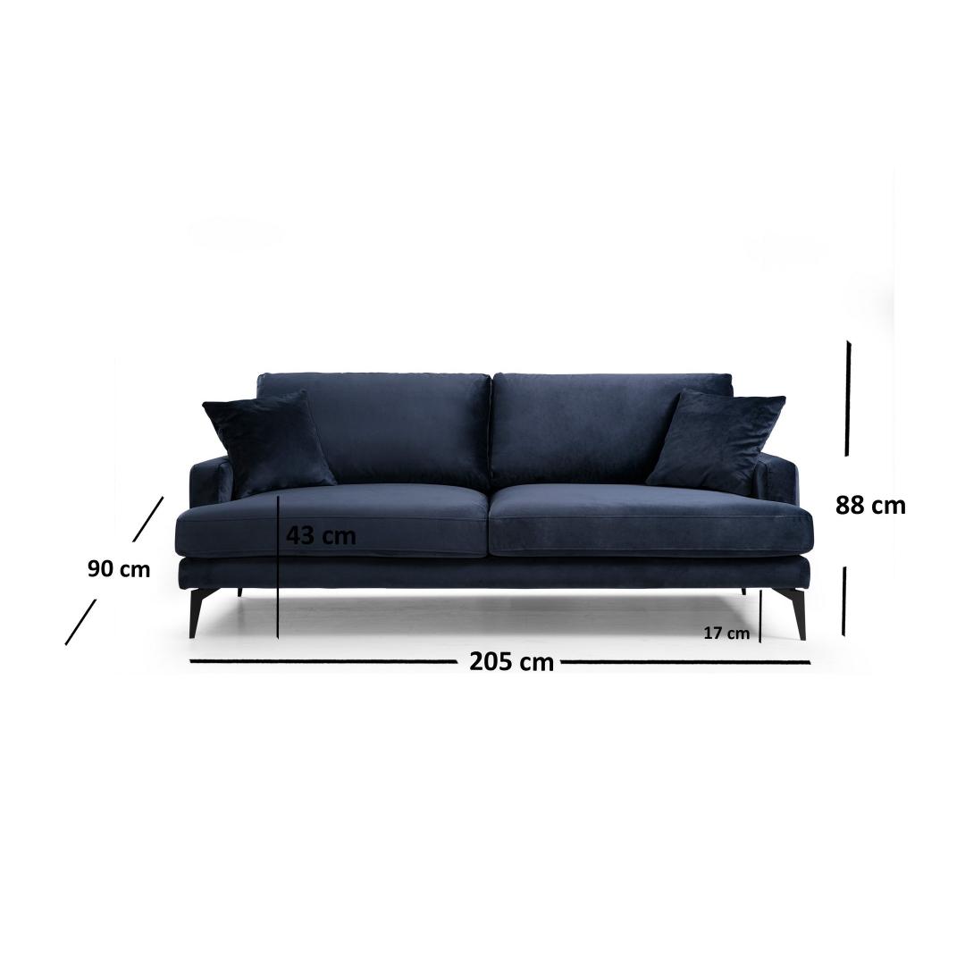 Tutvustame teile mugavuse ja stiili kehastust - meie tumesinist 3-kohalist diivanit. See uimastav tükk on loodud selleks, et muuta teie elutuba lõõgastumise ja rafineerituse paradiisiks. Võrratu mugavus ja tugiUppuge meie 28 dns pehme halli vahtpolsterduse ja 24 dns sule istumiseks, mis tagavad pehme ja toe täiusliku tasakaalu. 60 % vahtplast ja 40 % silikoonvaht seljatoele tagavad optimaalse nimmetoe, mis võimaldab teil pärast pikka päeva lõõgastuda.Luksuslik disainMassiivsest pöögipuidust ja puitlaastplaadist raamiga valmistatud diivan on vastupidav ja elegantne. 100% polüesterkangas lisab luksuslikkust, samas kui mereväe sinine värvus loob rahustava atmosfääri, mis sobib igale sisustusele. Mati mustad metalljalad lisavad industriaalseid jooni, muutes selle diivani igas ruumis väljapaistvaks. Muuduvuslik ja mugavMeie diivaniga on kaasas kaks teisaldatavat istumis- ja seljapatja, mis võimaldab teil kohandada oma istumiskogemust. Kuivpuhastatav kangas tagab lihtsa hoolduse ja pikaealisuse, nii et saate seda diivanit nautida aastaid. Tehnilised üksikasjad:Raam: Puit: Pöögipuit / puitlaastplaatKangas: Materjal: 100% polüesterPikkus: 205 cm, laius: 90 cm, kõrgus: 88 cm.Vaht: 28 DNS pehme hall vaht / 24 DNS sulgi istumiseks60% narmastatud vaht / 40% silikoonvaht selja jaoksPadi: 60% Snipeeritud vaht / 40% SilikoonvahtSuurus: 45 x 45 cm (2 tükki)Jalad: Matt mustad metalljaladVahu kõrgus: 16 cmVärv: mereväe sinineHellita meie 3-kohalise diivaniga ülima mugavuse ja stiiliga. Tõstke oma eluruumi esile selle soliidse sinise ilu abil, mis sobib ideaalselt hotellist inspireeritud või tööstuslikul teemalisse kontseptsiooni. Ärge jätke kasutamata võimalust muuta oma kodu lõõgastumise ja luksuse pühapaigaks. Tellige oma juba täna! Värv: Navy Blue