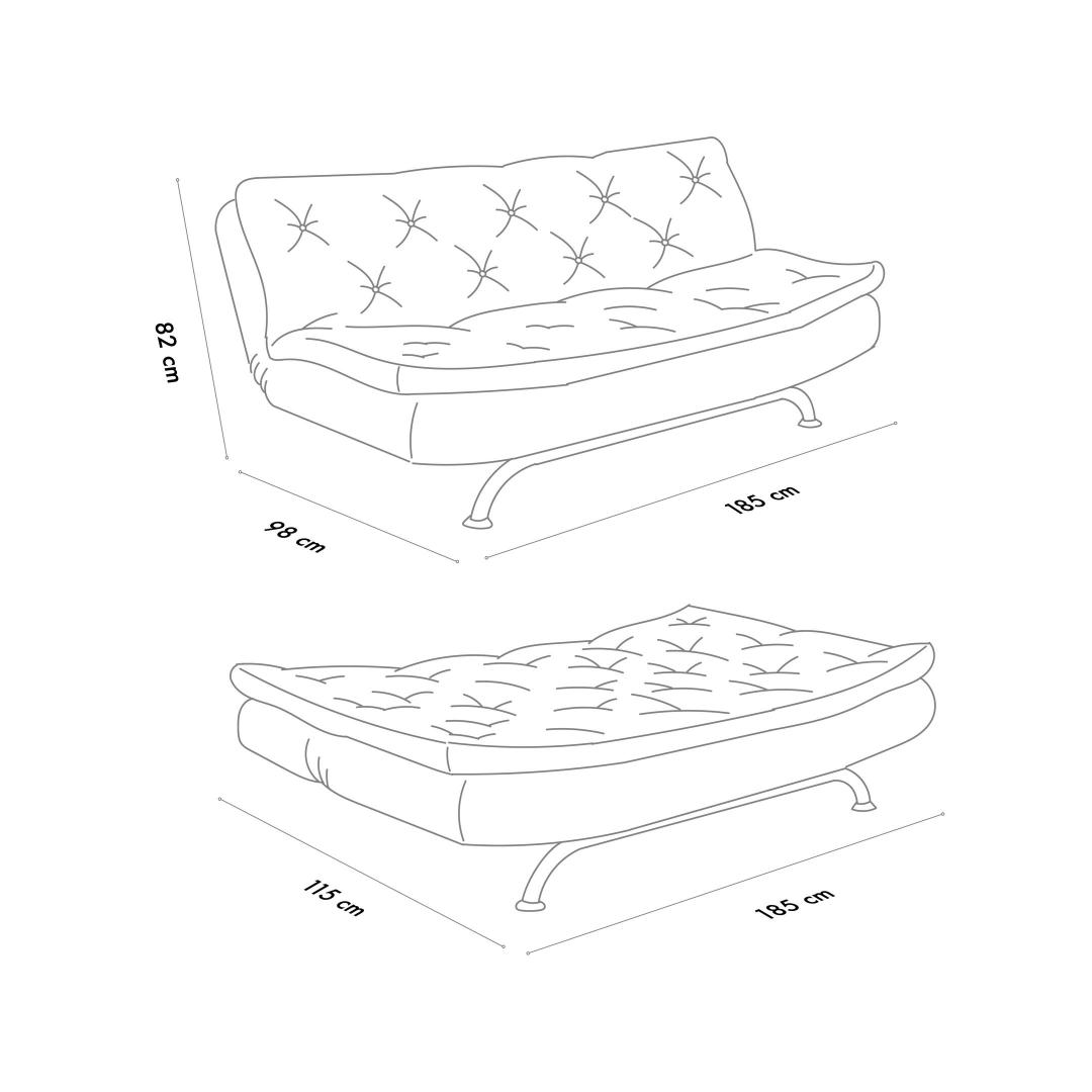 Measuring 63 cm x 185 cm x 82 cm as a sofa and 115 x 185 cm as a bed, this sofa-bed is perfect for small spaces or guest rooms. The wipeable fabric makes cleaning a breeze, while the metal legs add a modern touch to your decor. The legs are sent disassembled for easy transportation and assembly.