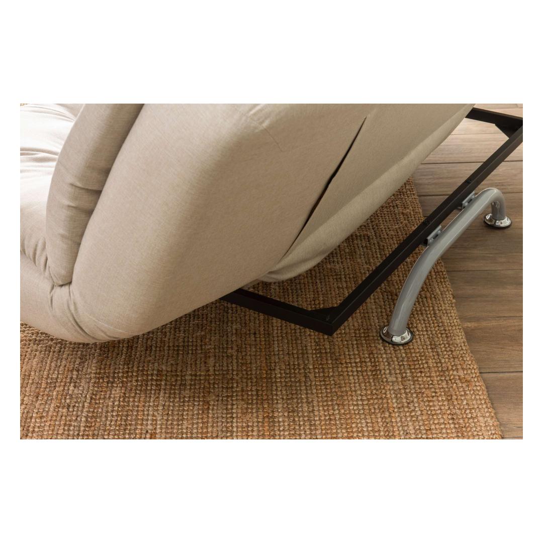 Crafted with a sturdy metal frame and soft polyester fabric, this sofa-bed is designed to provide you with the ultimate comfort. The 50 DNS rebonded foam ensures a medium-hard softness level, perfect for lounging or sleeping. The seat and back cushions are made of 50 DNS granulated sponge, offering support and comfort.