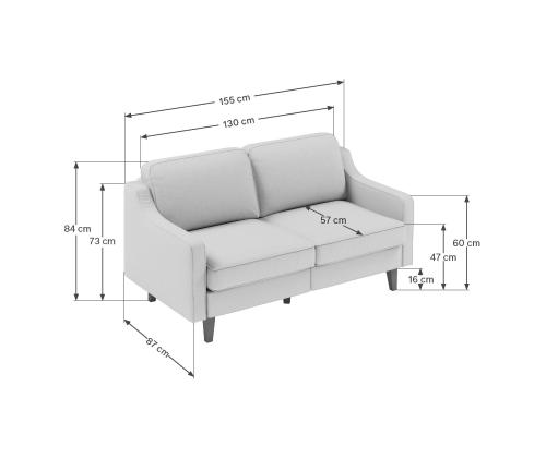 The caramel and walnut colors of this sofa add a touch of sophistication to any room. The 2 included pillows provide an extra layer of comfort and style. With dimensions of 155 cm in width, 84 cm in height, and 87 cm in depth, this sofa is the perfect addition to your home.