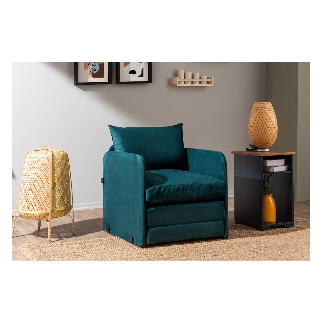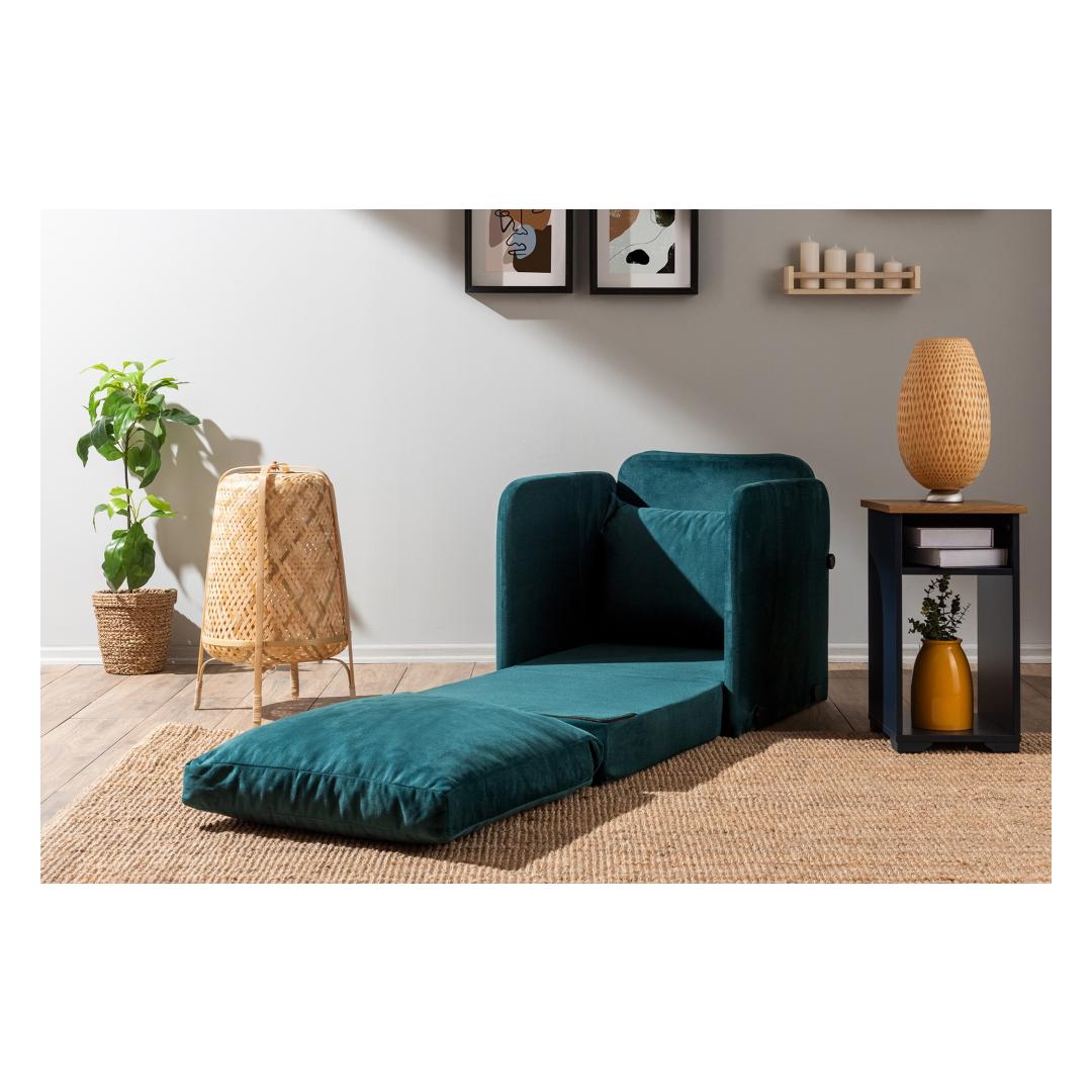 Transform your living space with our 1-Seat Sofa-Bed in a stunning Petrol Green color. This versatile piece is not just a sofa, but also a comfortable bed for those unexpected guests or lazy movie nights.