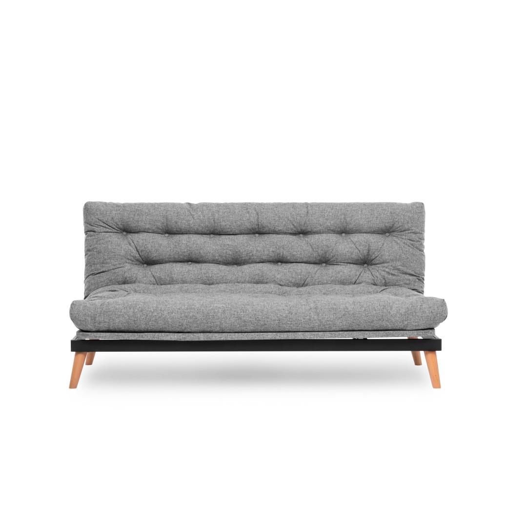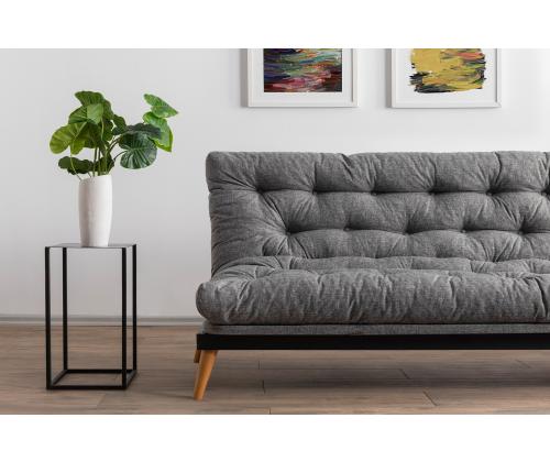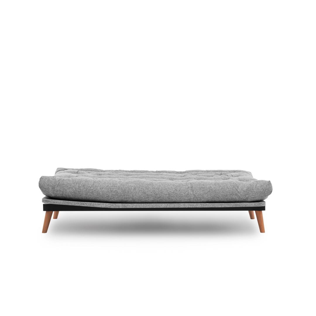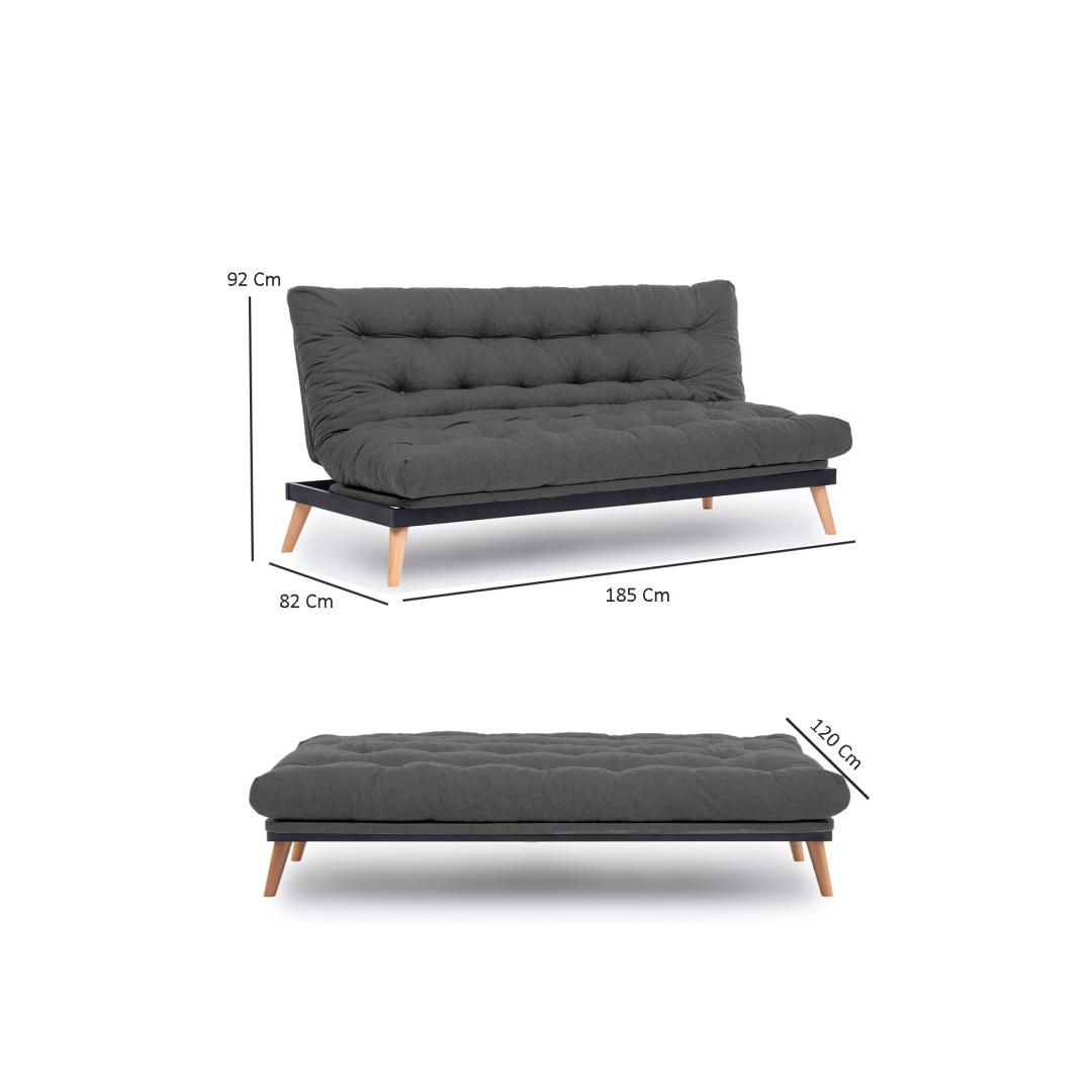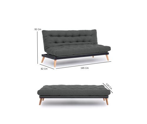 Our sofa-bed easily converts into a bed, providing a comfortable sleeping space for your guests. The sturdy metal frame ensures durability and stability, while the natural wood legs add a touch of sophistication. The spacious bed size of 185 cm width and 120 cm depth ensures a restful night's sleep.