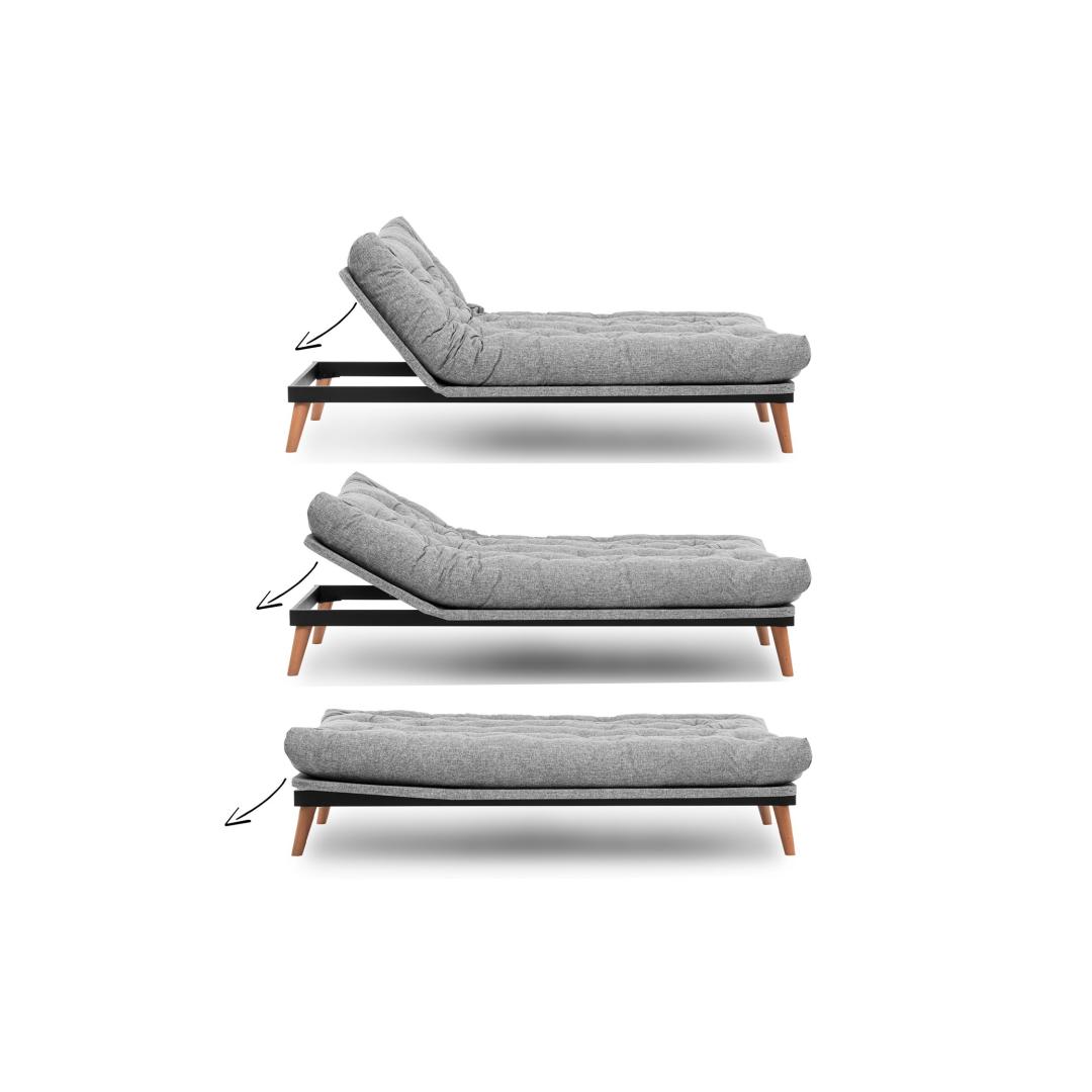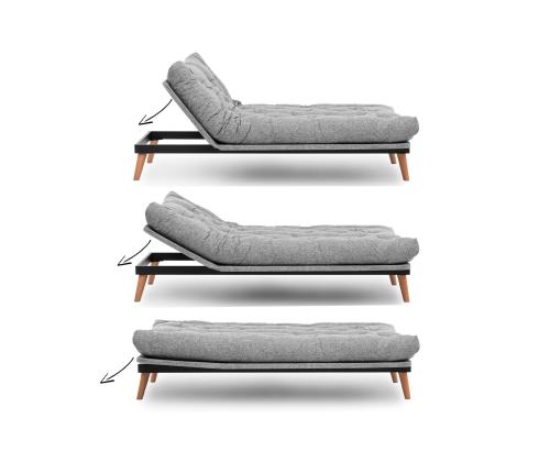 With its plush linen fabric and foam backrest, our sofa-bed offers unmatched comfort. The 14 level adjustable backrest allows you to find the perfect position for lounging or sleeping. Its elegant design and light grey color will effortlessly complement any decor.